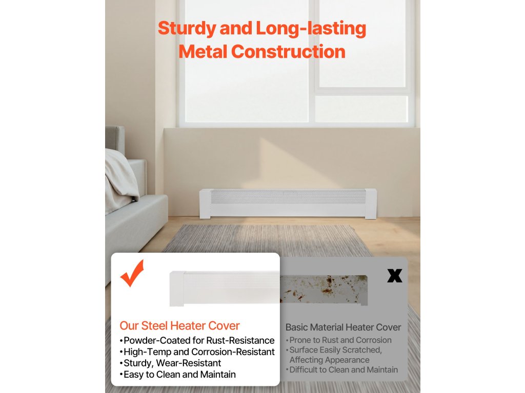 Ez a csere padlófűtő burkolat számos fűtőberendezéshez alkalmas, és a könnyű tisztítás érdekében robusztus, porszórt acélból készült. A hatékony szellőzés megakadályozza a túlmelegedést és egyenletes hőeloszlást biztosít. Könnyen felszerelhető, és elegáns fehér kialakítása bármilyen otthoni enteriőrt kiegészít.