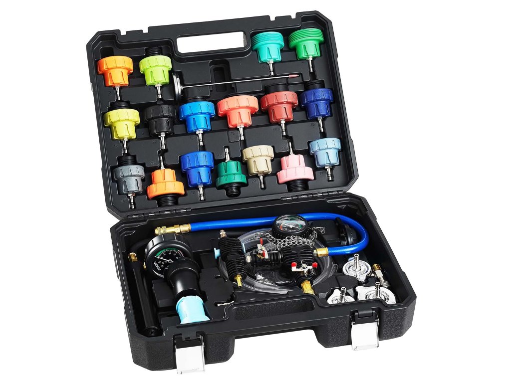 Hűtőrendszer nyomásmérő 47 db, 3 fém adapter, szivattyú