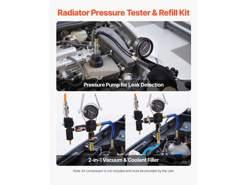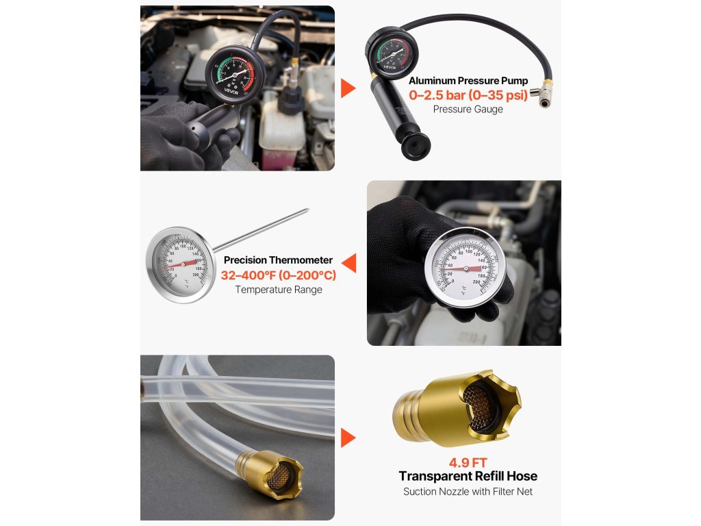 Sokoldalúan használható hűtőfolyadék nyomásmérő készlet