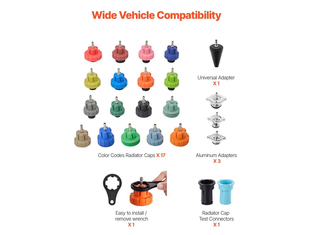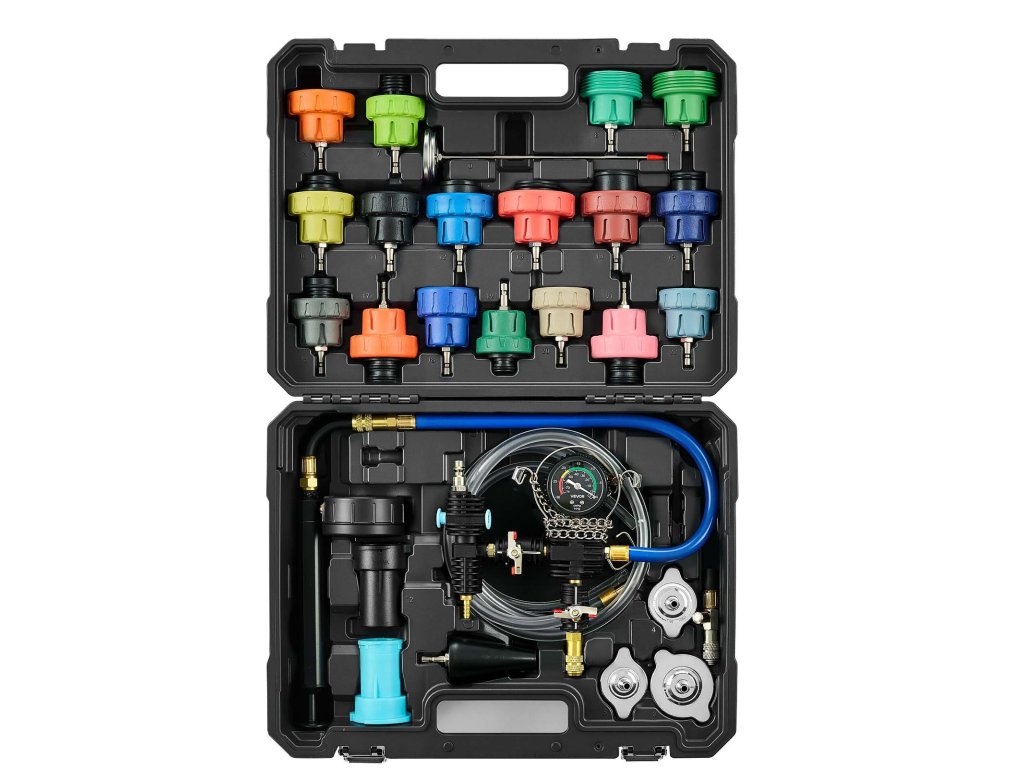 A radiátornyomás-ellenőrző készletünk többféle méretű adaptert tartalmaz, amelyek biztonságosan illeszkednek a különböző járművek radiátornyílásaira. Növeli a tömítési teljesítményt és megakadályozza a szivárgást vákuum- vagy nyomás alatti műveletek során.