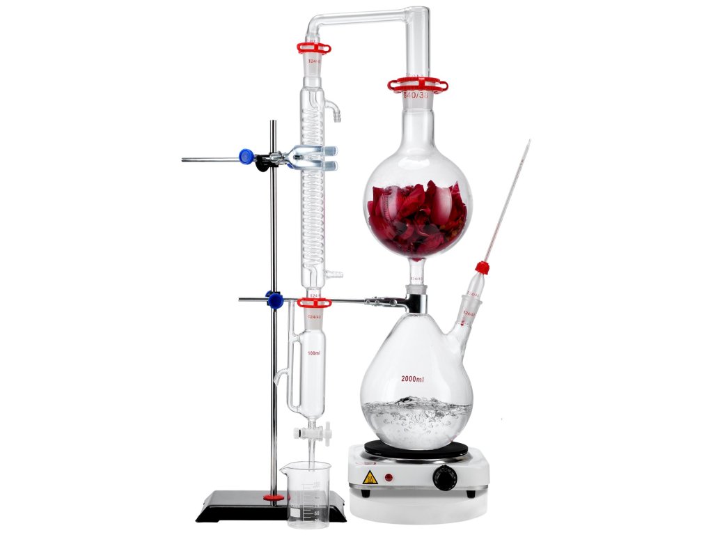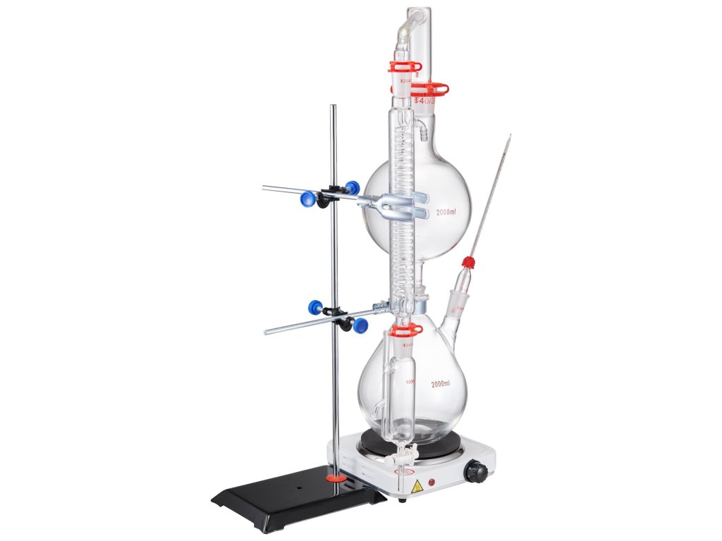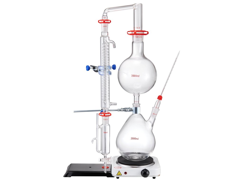 Illóolaj-desztillációs készlet 2000 ml, 3,3 bórüveg, 1000 W