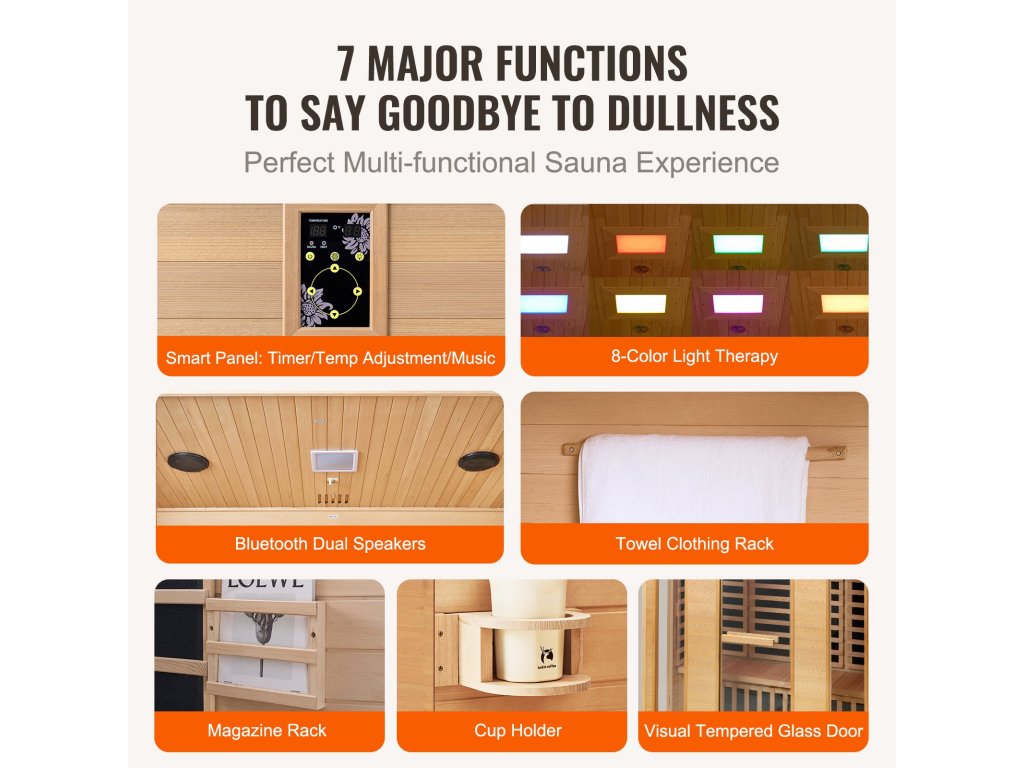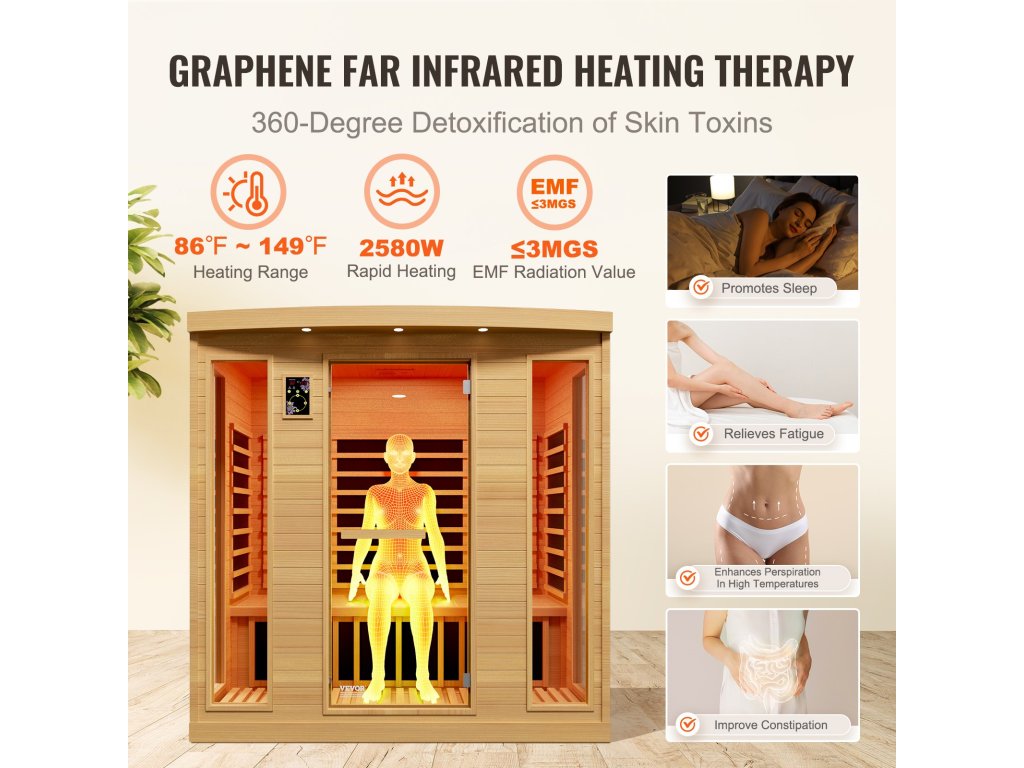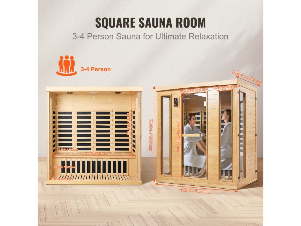 Infraszauna 3-4 fő részére, 2580W, alacsony EMF, bluetooth