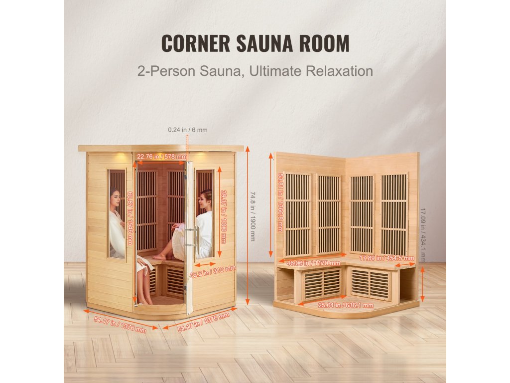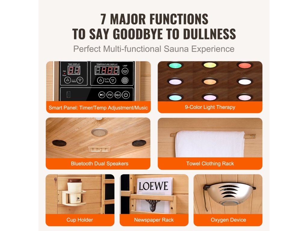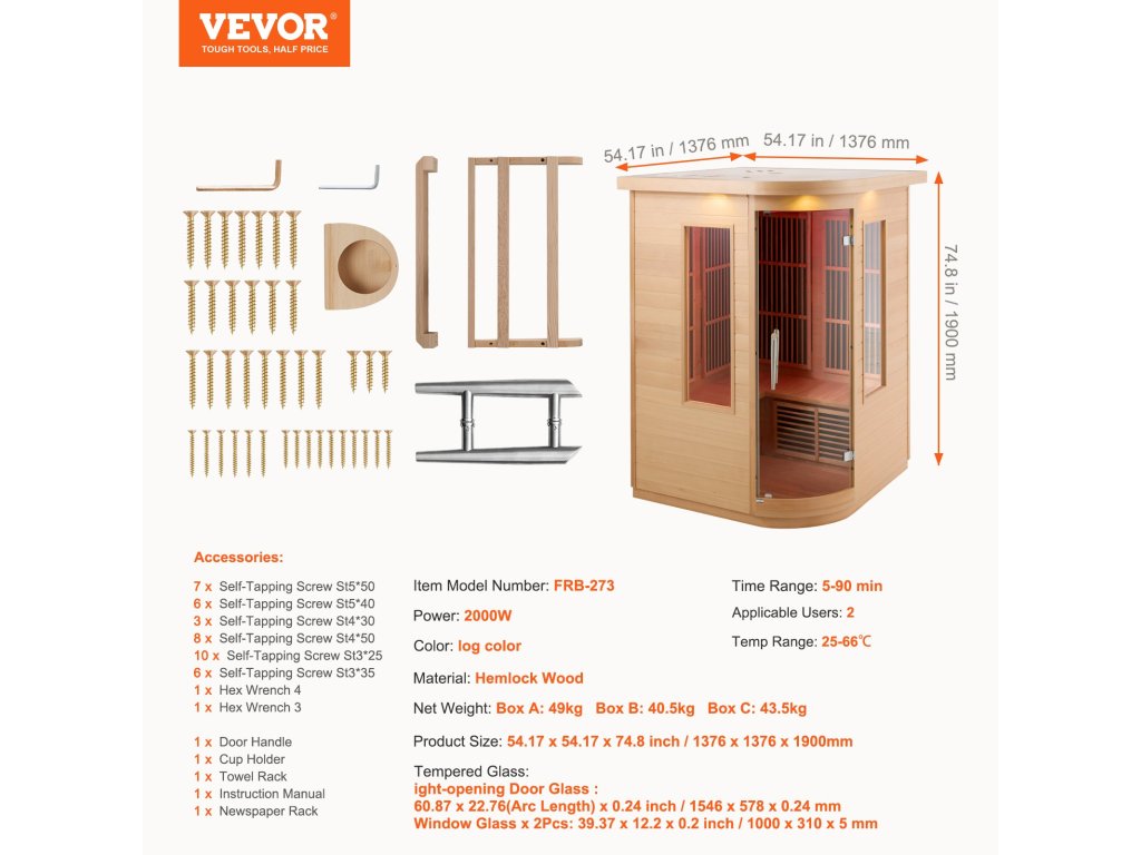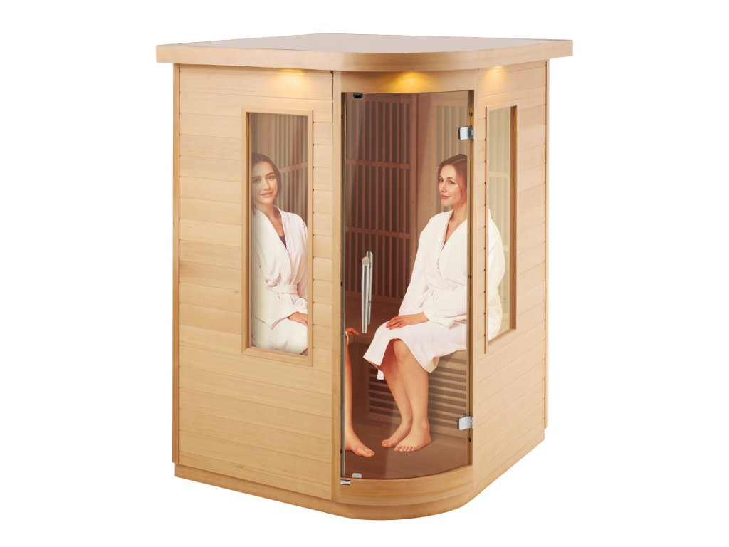 Infravörös fa szauna 2 fő részére, 1850W, edzett ajtó, Bluetooth