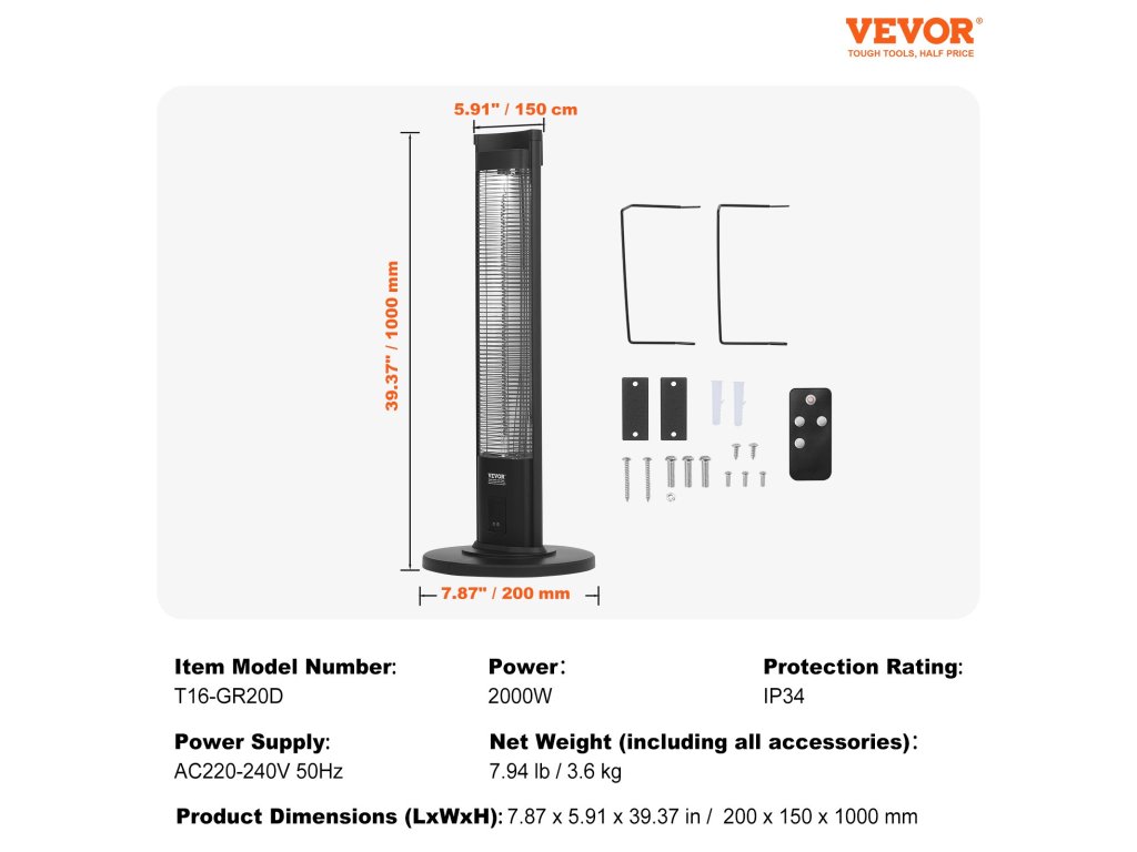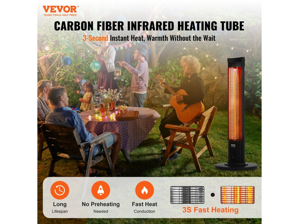 Ez az infravörös fűtőberendezés kiváló minőségű fűtőcsöveket használ, amelyek előmelegítés nélkül gyors hőt biztosítanak. A kényelem érdekében többféle állítható paraméterrel rendelkezik. Ideális otthonokba, udvarokra, garázsokba vagy teraszokra, hogy hangulatos környezetet teremtsen a szabadtéri tevékenységekhez.