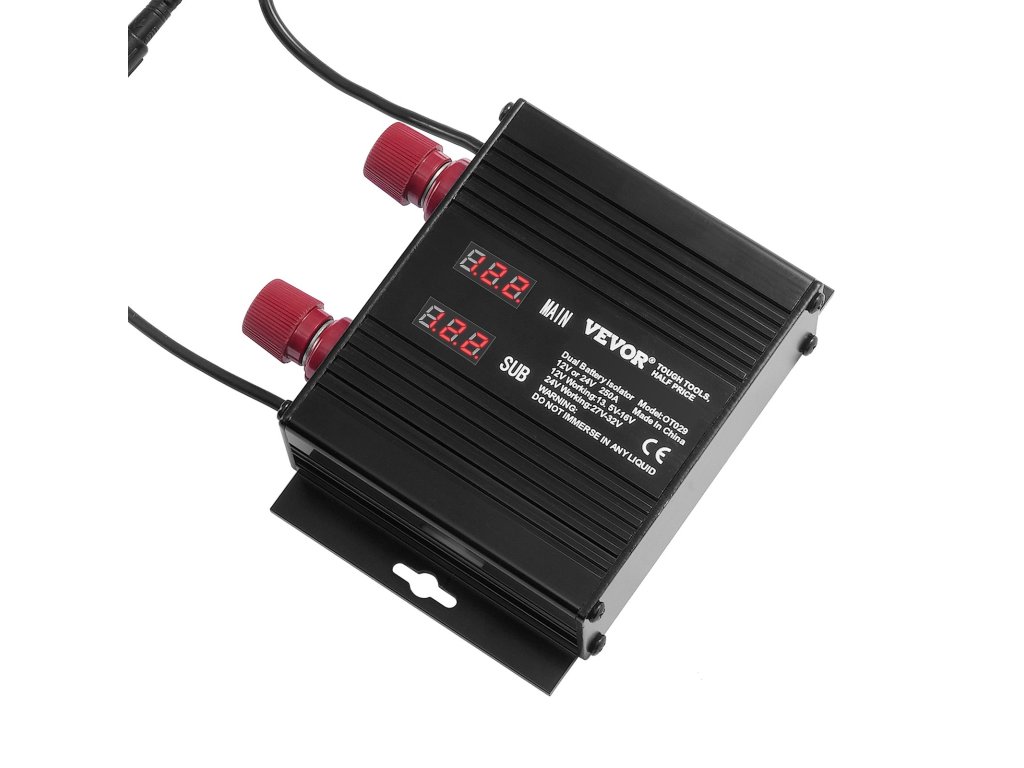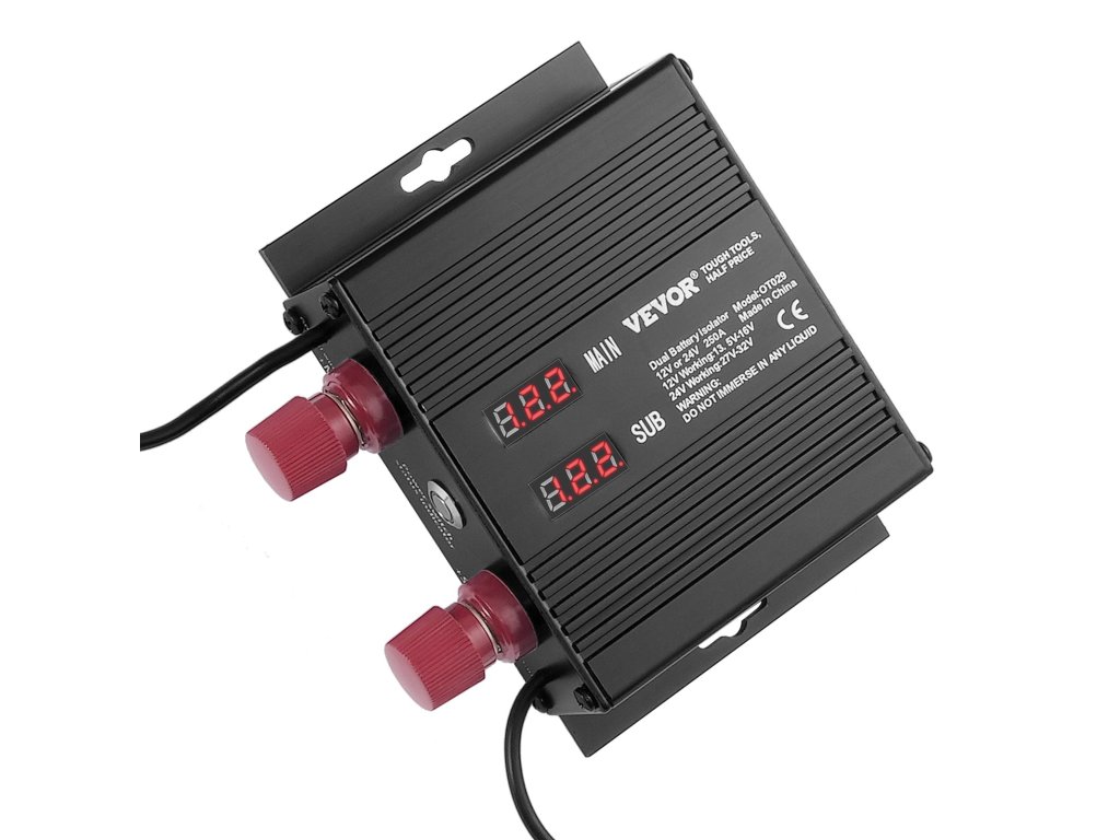 Intelligens akkumulátor-leválasztó 250 A, 12V/24V, VSR, LCD kijelzővel, autóba
