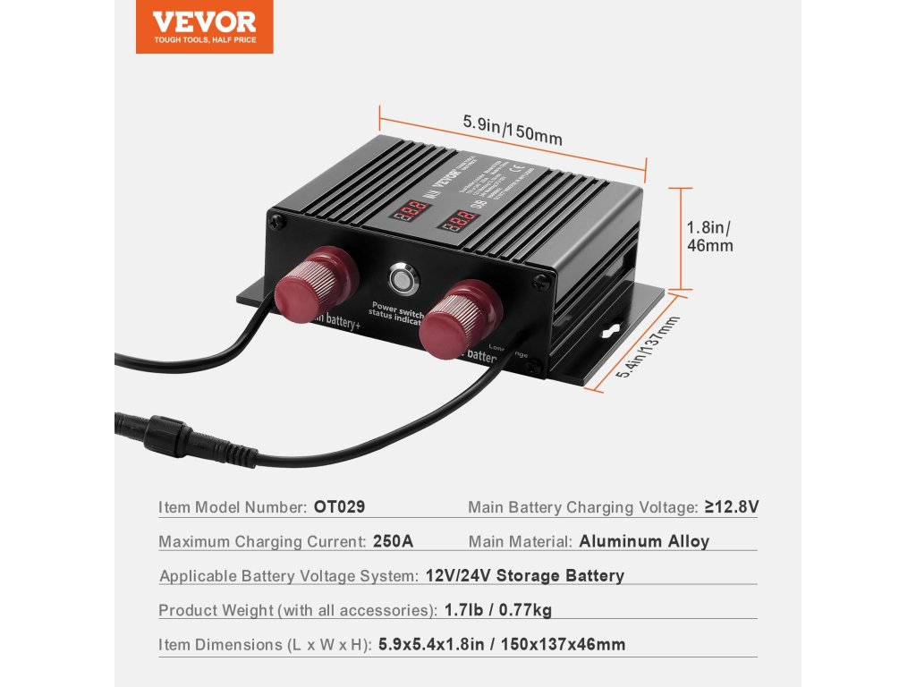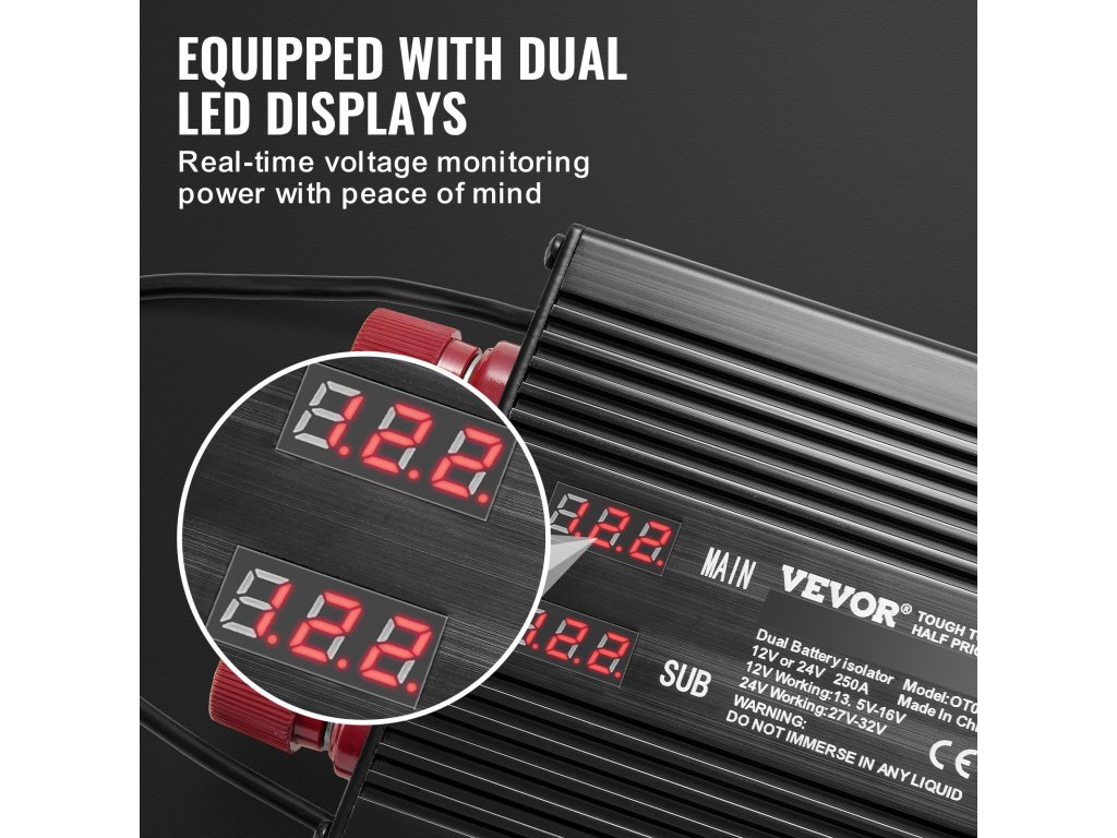 A 250A akkumulátor leválasztónk intelligensen illeszkedik a 12V-os vagy 24V-os rendszerekhez. Két LED kijelzővel az akkumulátorok állapotának valós idejű ellenőrzéséhez, intelligens feszültségfelismerő funkcióval és többszörös védelemmel megbízható támasza az utazások során. Élvezze a stabil és biztonságos utazást!