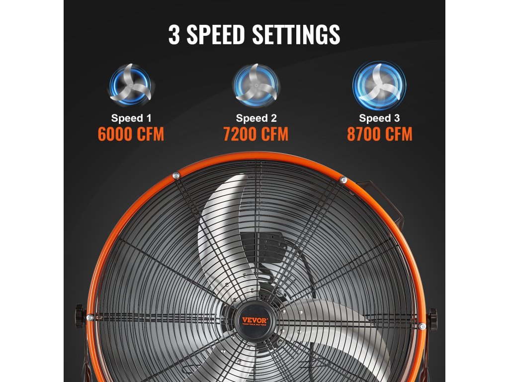 A VEVOR ipari ventilátor kiváló minőségű motorral van felszerelve, amely erőteljes légáramlást biztosít a hatékony szellőztetéshez. Speciális lapátkialakítása javítja a légmozgást, valamint erős és stabil légáramlást biztosít a friss és kényelmes munkakörnyezet érdekében.
