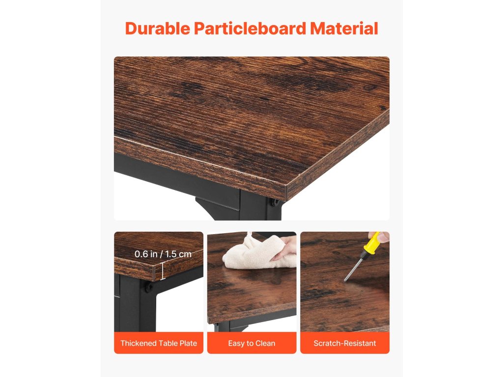 A vastag forgácslap lap és a korrózióálló szénacél váz elősegíti a hosszú távú használatot, a megerősített alap és az állítható lábak pedig stabilan tartják az asztalt, és kevésbé inognak.