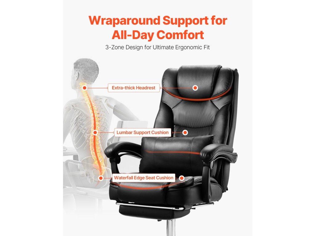 Állítható fekvő kialakítással rendelkezik, amely lehetővé teszi, hogy könnyedén hátradőljön és pihenjen, valamint állítható lábtartóval és megerősített karfákkal párosul, így tökéletes pihenőhelyet biztosít a munkaszünetek alatt. Ez csökkenti a karokra és a hátra nehezedő nyomást, növelve a termelékenységet és a kényelmet.