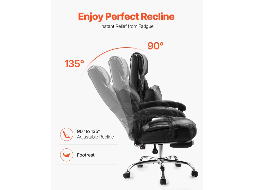 Irodai szék magas háttámlával, műbőrrel, lábtartóval, 135°
