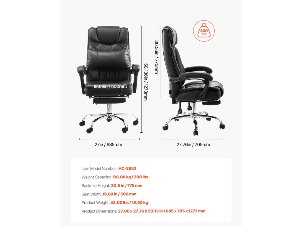 A 0 - 3,94 hüvelyk közötti magasságállítási tartománynak köszönhetően ez a vezetői szék egy gombnyomással könnyedén beállítható az íróasztal magasságához. A hintalábon található reteszelő mechanizmus biztosítja a szék stabilitását, és megfelel a különböző irodai igényeknek.