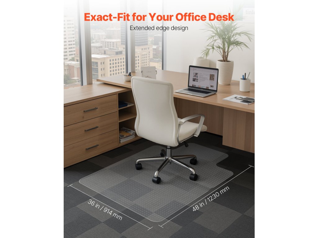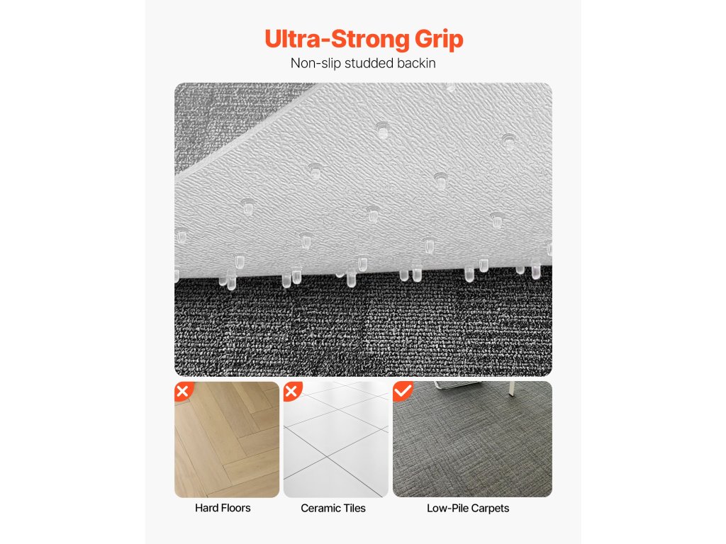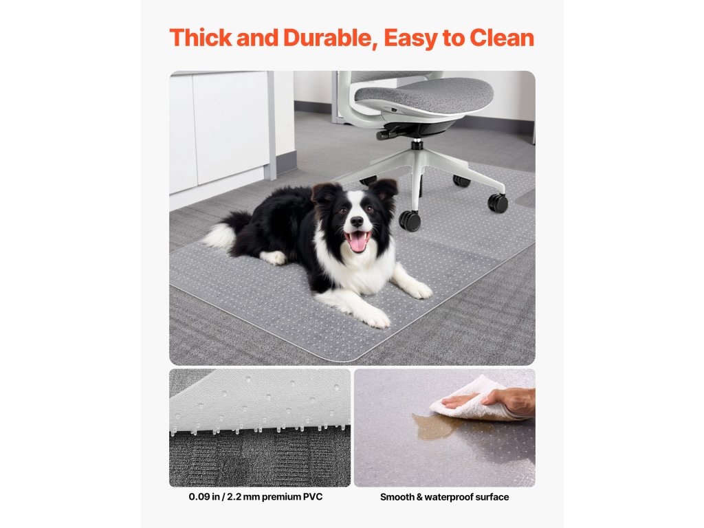 Az átlátszó padlószőnyeg vastag párnázó rétege elnyeli a szék kerekeinek nyomását, így védi a szőnyeget a horpadásoktól és karcolásoktól. Meghosszabbítja a szőnyeg élettartamát, és csökkenti a szék kerekeinek kopását, így minden úgy néz ki, mintha új lenne.