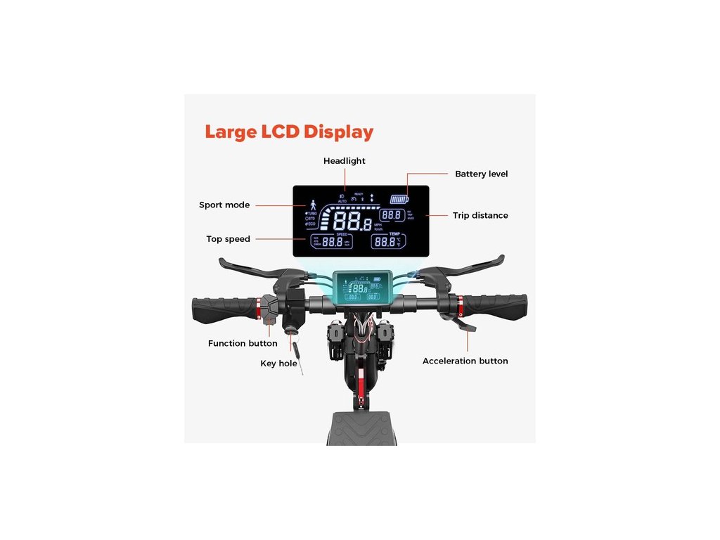 A nagy teljesítményű 800W-os motor és a csúcssebesség eléri a 45 km/h-t, és akár 25&st-os emelkedőket is megmászhat.