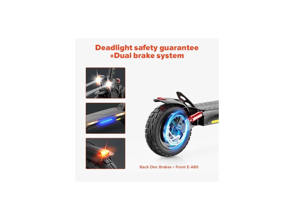 Az iScooter első és hátsó tárcsafékekkel van felszerelve, amelyek kiváló fékezési teljesítményt és rövidebb fékutat biztosítanak.