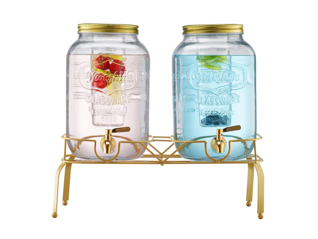 Italadagoló 2×8 l üvegből, állvánnyal, rozsdamentes acél csappal, infuzátorral