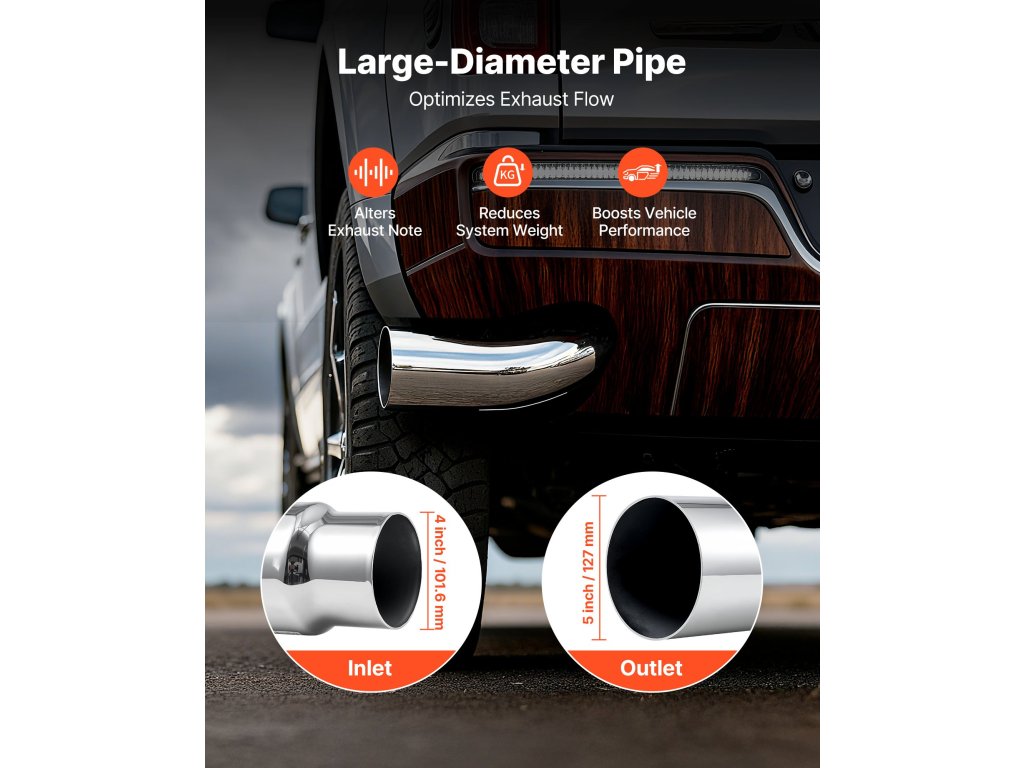 Ez az ezüstszínű krómozott kipufogóvégcső elegáns megjelenést kölcsönöz, miközben növeli a kipufogógáz áramlását, így fokozza járműve teljesítményét, teljesítményét és hangját.