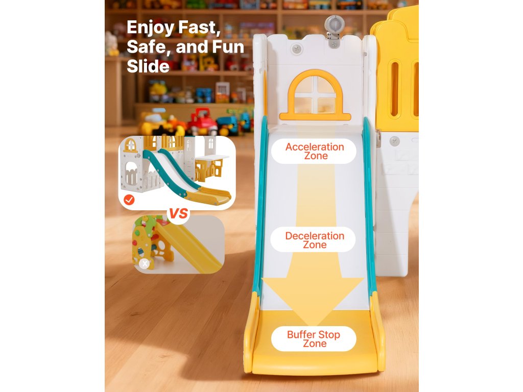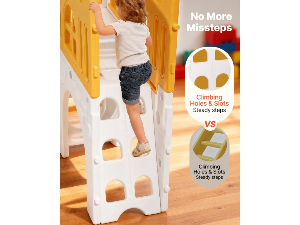 A tartós HDPE műanyagból készült VEVOR kisgyermek csúszdakészlet ellenáll az aktív játéknak, miközben alacsony platformokat, zárt lépcsőfokokat és lekerekített éleket kínál. A gyerekek félelem nélkül mászhatnak, csúszhatnak és felfedezhetnek, fejlesztve a koordinációt és élvezve a fantáziadús, interaktív kalandokat a beltéren vagy a szabadban.