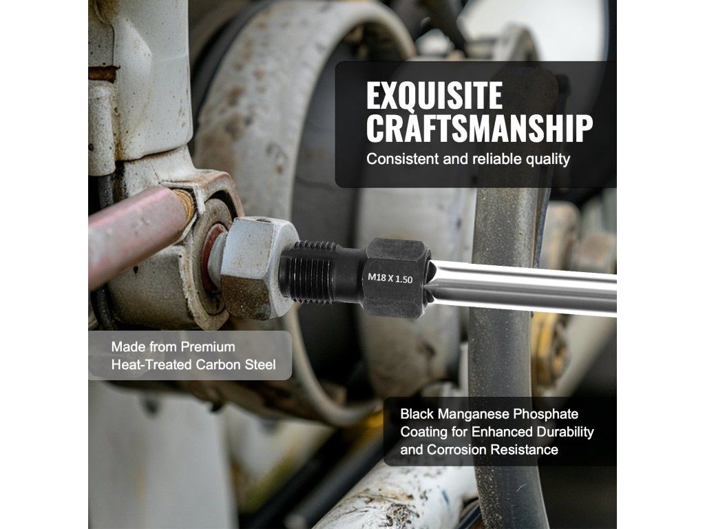 Ez a menetjavító készlet HRC45-55 keménységű szénacélból készült, amely képes ellenállni a nagy mechanikai nyomásnak hajlítás vagy törés nélkül. Ezenkívül a hőkezelés és a fekete foszfátos bevonat növeli az időjárás viszontagságaival szembeni ellenállását, így biztosítva a hosszú távú stabilitást és megbízhatóságot.