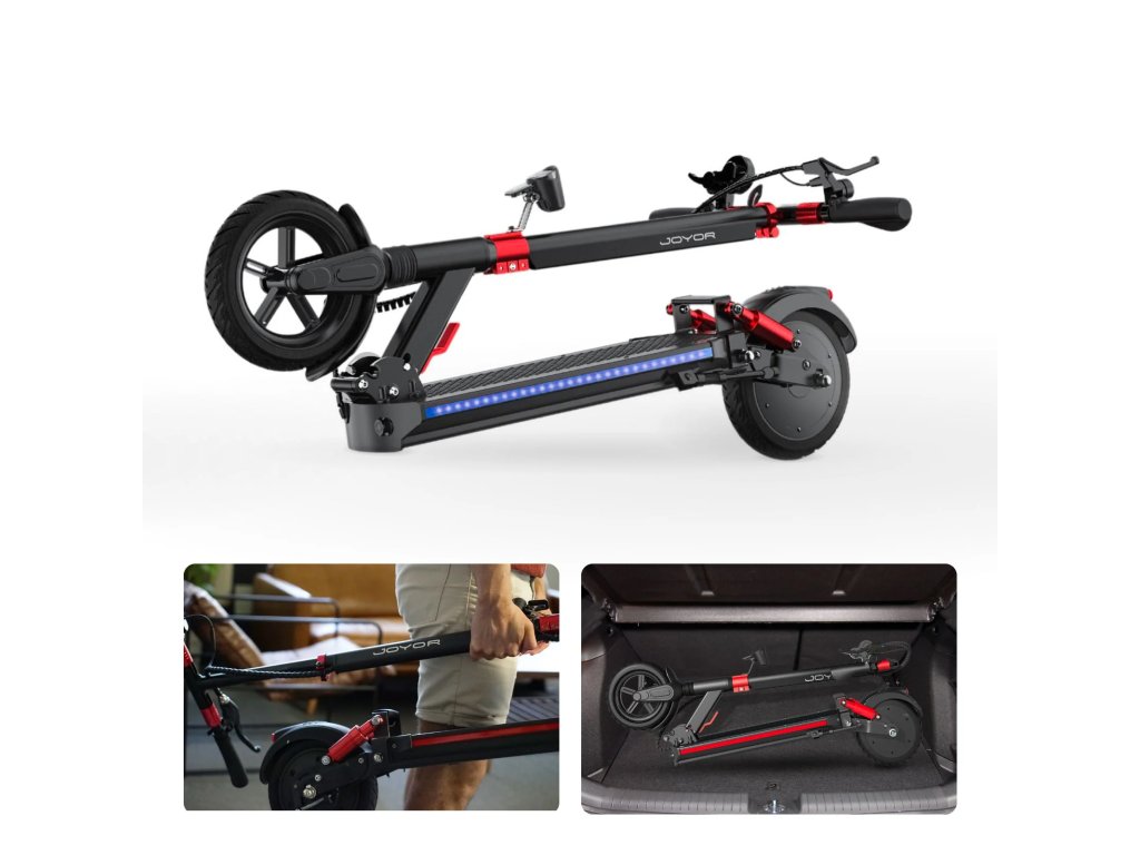 A Joyor G5 kialakítása a következőket ötvözielegancia és praktikum. Alumíniumötvözetből készült vázával egyensúlyt teremt a stílus és a funkcionalitás között. Kompakt, mégis kényelmes, kényelmes kormánykerékkel rendelkezik a könnyű manőverezéshez. Mindössze 17,8 kg-os súlyával kategóriájában a legkönnyebbek közé tartozik, és könnyű szállítást biztosít.