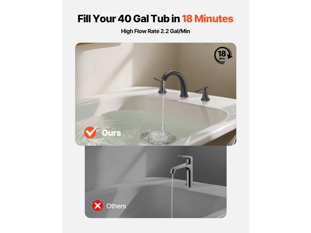 Ez a percenkénti 2,2 gallonos római kádcsap mindössze 18 perc alatt tölt meg egy 40 gallonos kádat. A háromlyukú fedélzeti csaptelep a legtöbb kádhoz illeszkedik. Rozsdamentes acélból készült, masszív konstrukciót, kétfogantyús működést és megbízható szelepmagot kínál a következetes, könnyű működés érdekében.