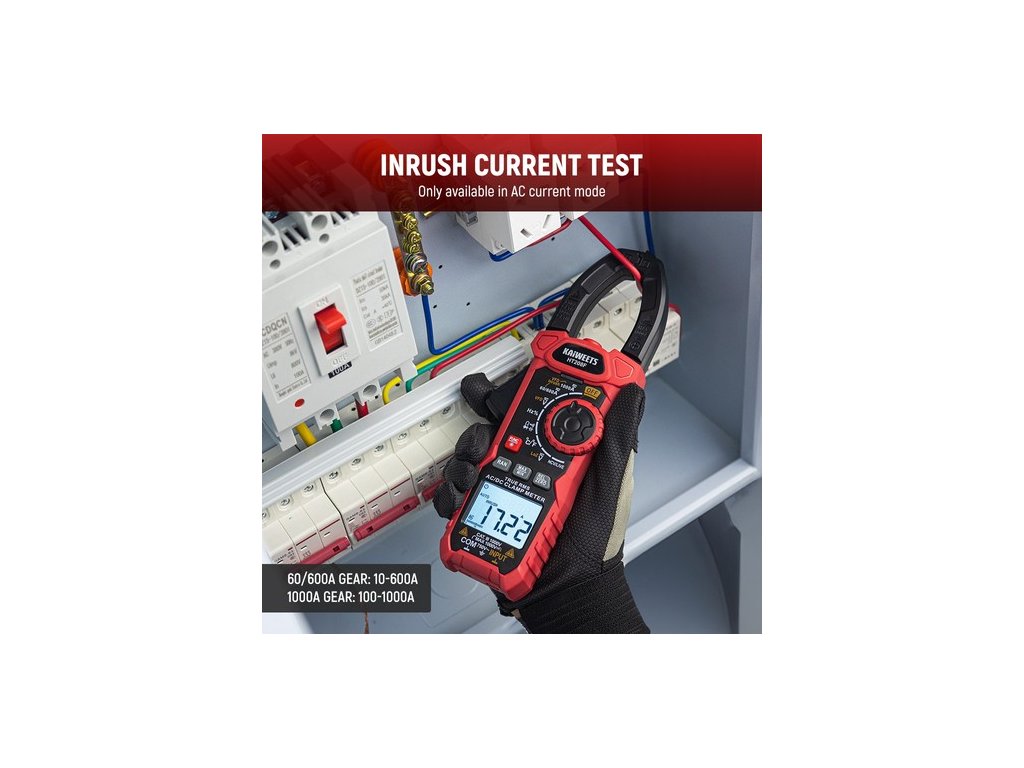 Az indítóáram értékének ismerete segít gyorsan megtalálni az indítási problémát, akár a motorban, akár az indítóáramkörben van a hiba. Az indítóáram mérési ideje körülbelül 100 ms. Ha az áram nagyobb, mint 10 A, az Inrush funkció jól működik. Az inrush funkció csak AC üzemmódban érhető el.