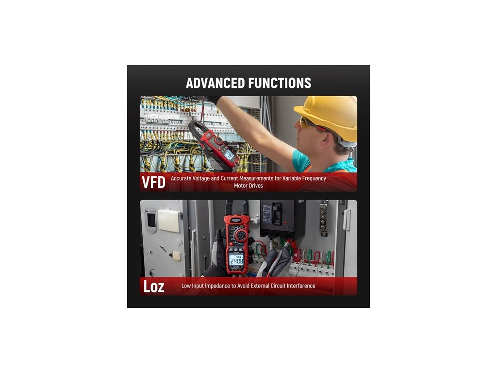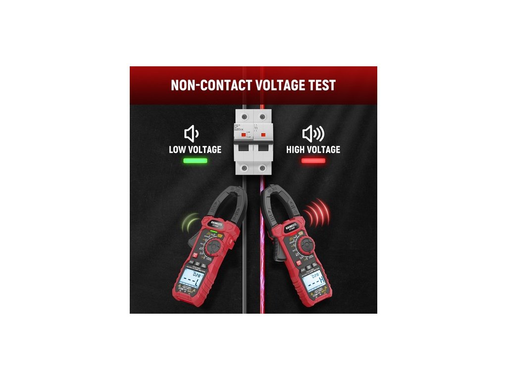 A beépített érintésmentes feszültségérzékelő (NCV) könnyen és gyorsan megállapíthatja, hogy van-e feszültség a helyszínen. A praktikus zseblámpa megvilágítja a gyengén megvilágított területet; a továbbfejlesztett háttérvilágítású kijelző segít abban, hogy közvetlen napfényben könnyebb és tisztább legyen az olvasás.