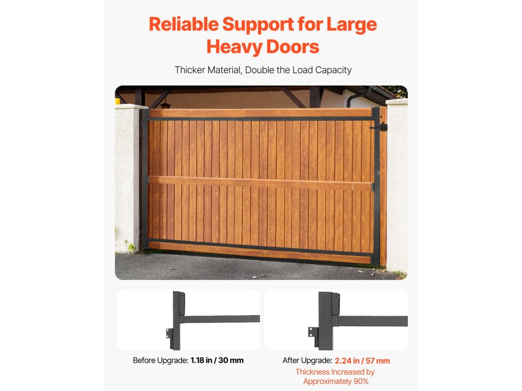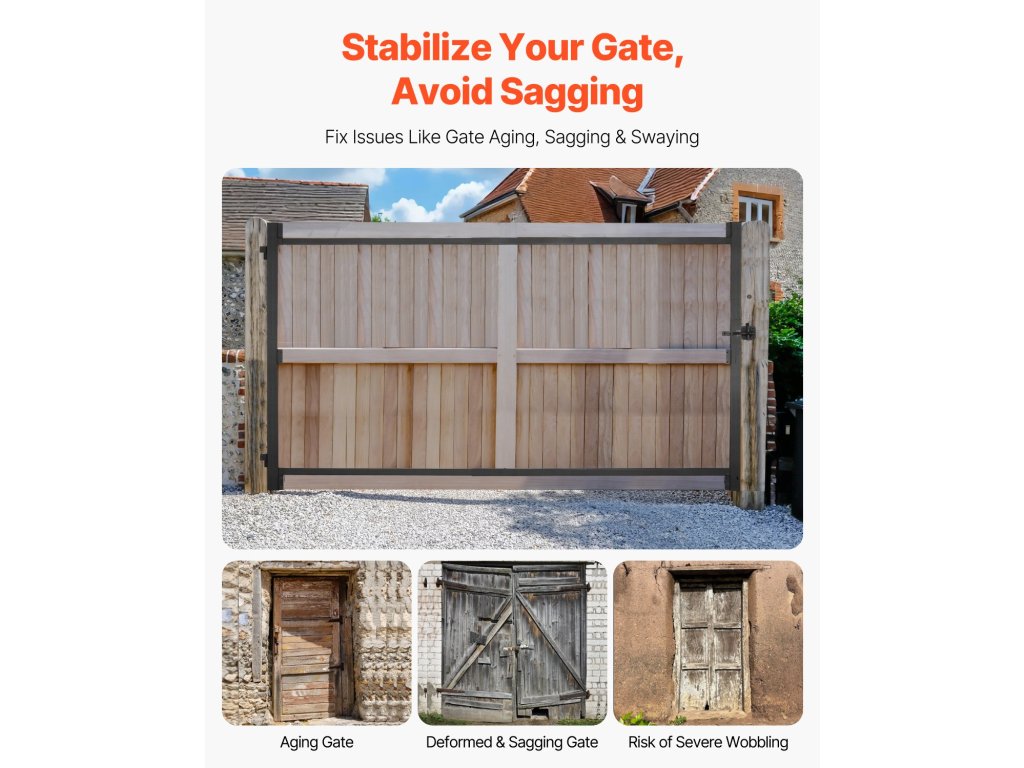 Ez a fémkapu-készlet megakadályozza a megereszkedést és az öregedést, és a piacon lévő kaputípusok 99%-ához illeszkedik. Korrózió- és rozsdaálló, és ellenáll az erős esőnek, hónak és más zord időjárási körülményeknek, így hosszú távú kültéri használatra is alkalmas. Ideális minden típusú és méretű kapuhoz.