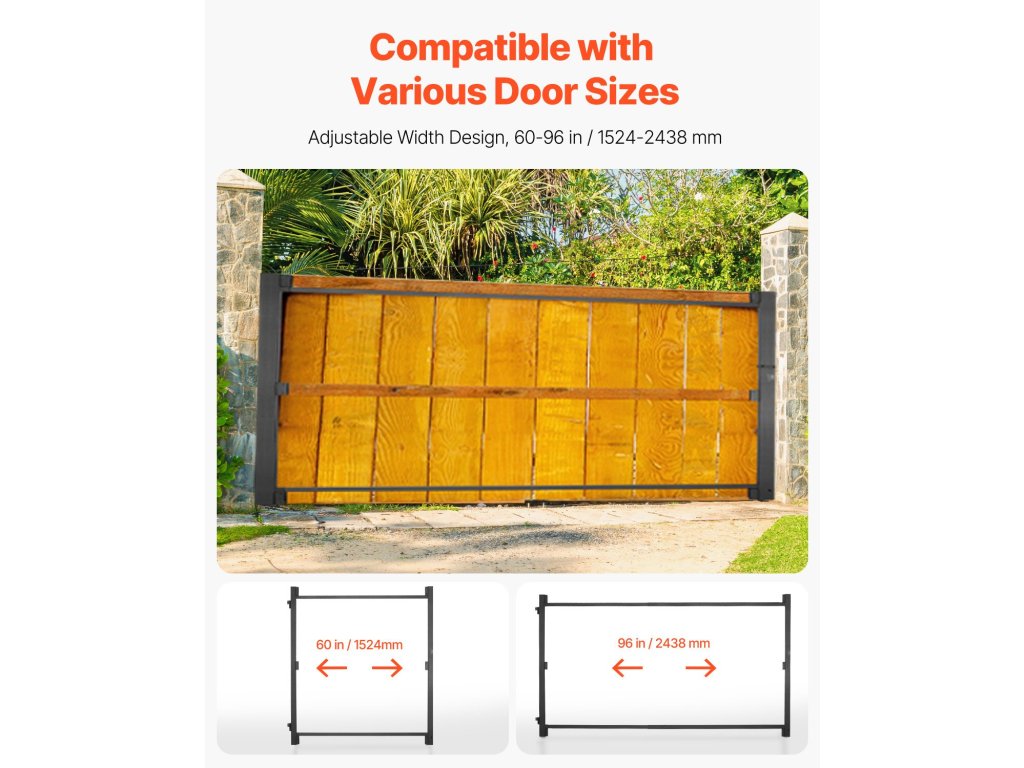 A 60 és 96 hüvelyk közötti állítható magasságú tartomány lehetővé teszi a különböző szélességű ajtók használatát. Nincs szükség vágásra, és ez az állítható kapukészlet dupla kapukra is felszerelhető, így ideális választás a nagyméretű kapuk telepítéséhez.