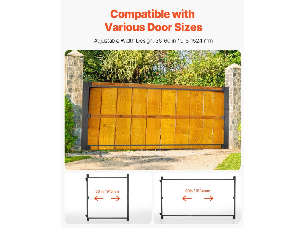 A 36 és 60 hüvelyk közötti állítható magasságok lehetővé teszik a különböző szélességű ajtók befogadását. Nincs szükség vágásra, és ez az állítható kapukészlet dupla kapukra is felszerelhető, így ideális választás a nagyméretű kapuk telepítéséhez.