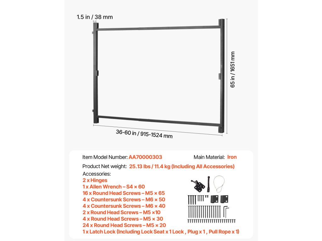 | Termék méretei (H x Sz x Ma) | (36,02-60) x 2,24 x 65 hüvelyk / (915-1524) x 57 x 1651 mm |