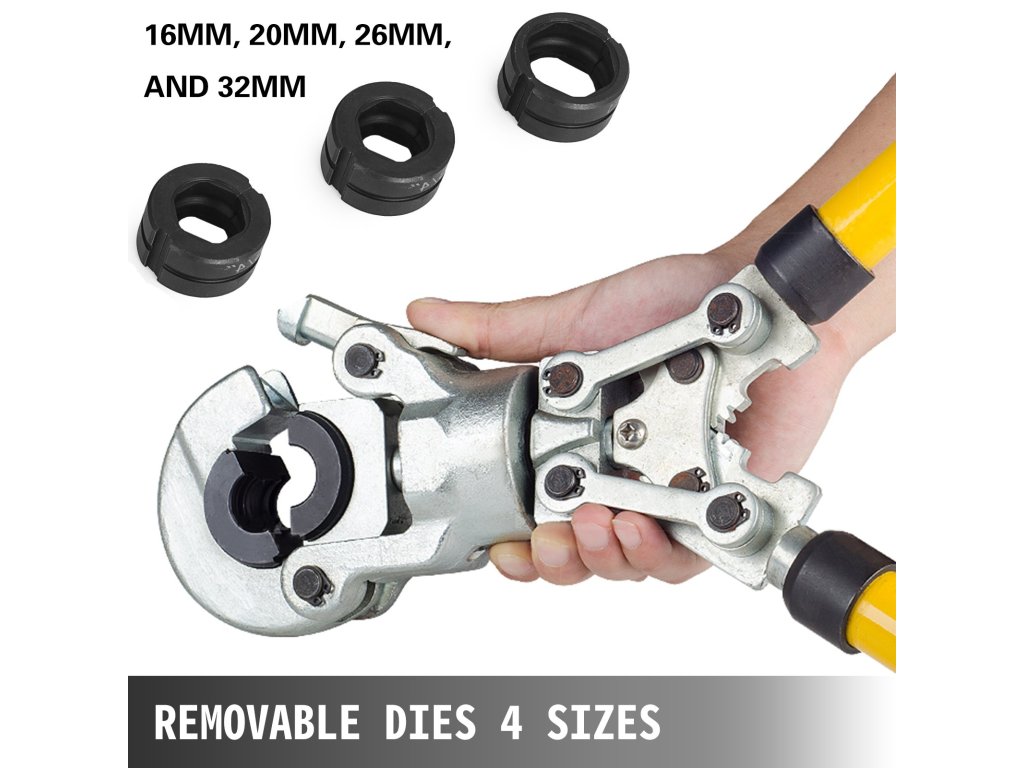 Különböző méretű (16 mm, 20 mm, 26 mm és 32 mm) cserélhető rézpofákkal szállítjuk, amelyek alkalmasak a legtöbb réz/csőpréseléshez. A fej könnyen nyitható, a pofák könnyedén cserélhetők.
