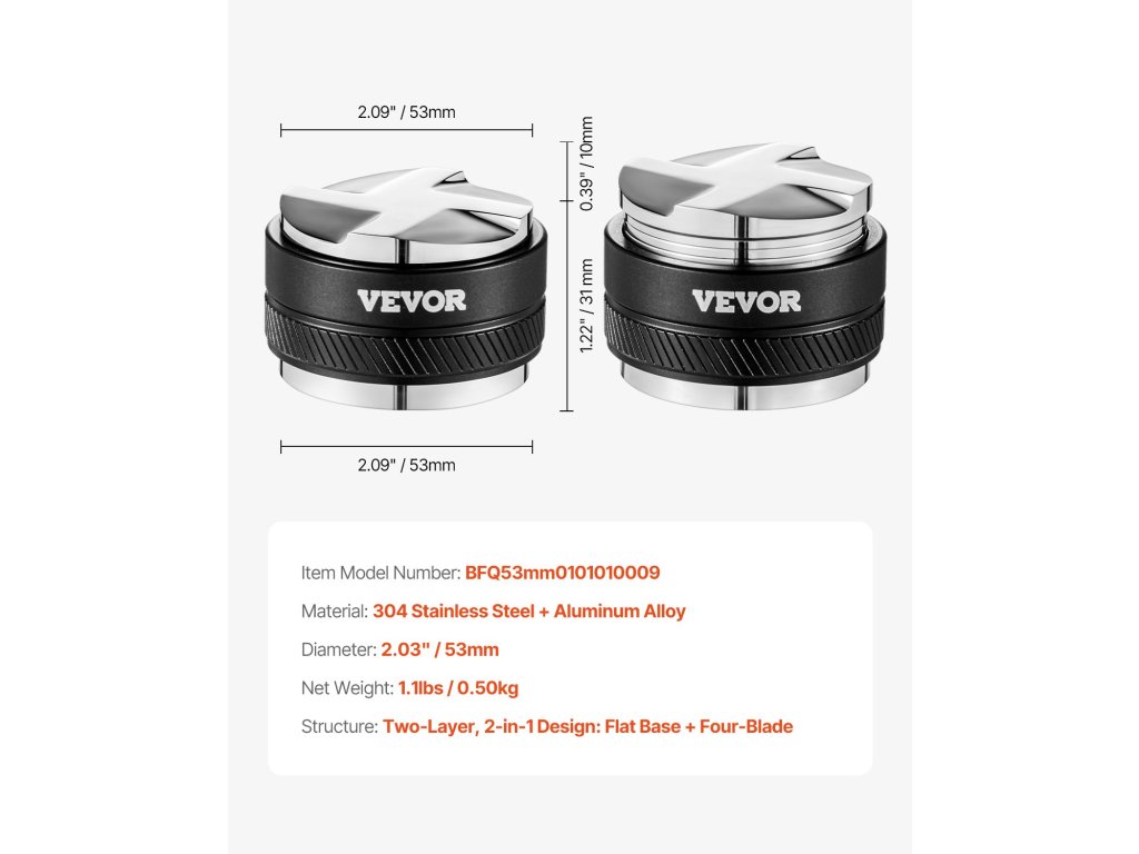Kávéadagoló 53 mm 2 az 1-ben állítható, ventilátoros talppal, 304 rozsdamentes acél