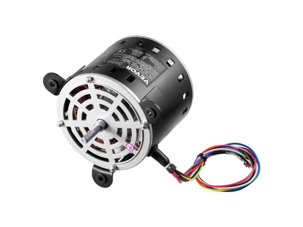 A VEVOR 1/3HP kemenceventilátor motorja 3 sebességfokozatú (1250, 950 és 750 fordulat/perc), 220 V feszültségen működik, 1,95 A áramerősséggel. A tengely hossza 20 mm, a tengely átmérője 10 mm, ROT. CCW a tengely végétől és egy CBB60 15μF/450V-os kondenzátorral ideális választás légkondicionáló csatornarendszerekhez és kemencékhez.
