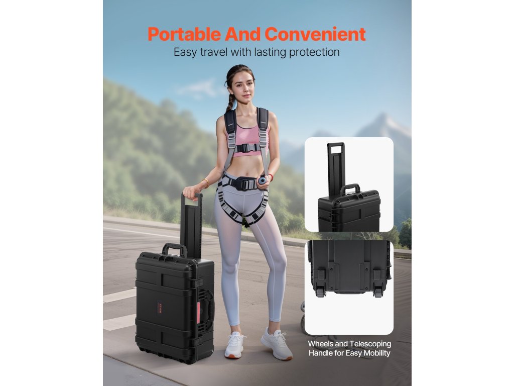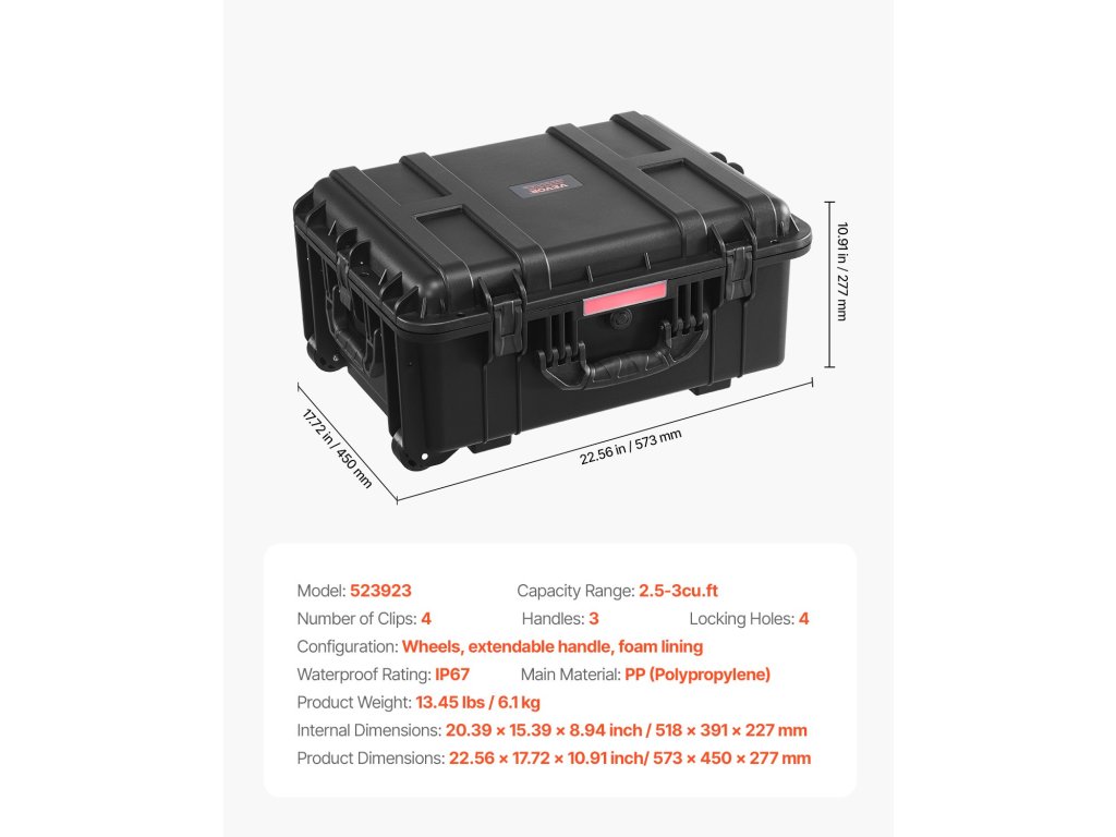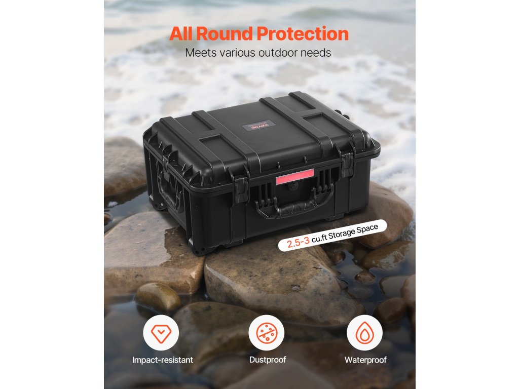 Kemény, vízálló tok 2,5 köbláb, IP67, 4 zár, kerekek és habszivacs