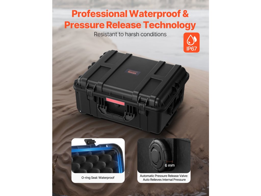 A tömítő O-gyűrűnek köszönhetően ez az időjárásálló tok megbízható vízálló védelmet nyújt, hogy tárgyai szárazon maradjanak, függetlenül a körülményektől.