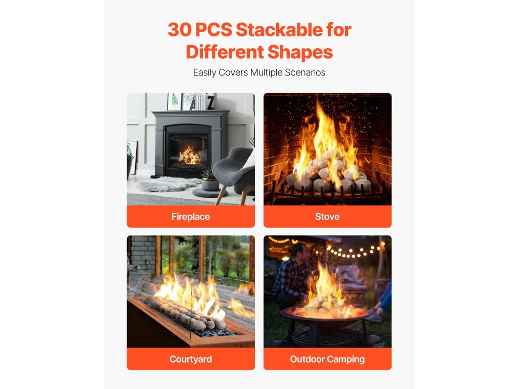 Tartós kerámiaszálból készült, amely garantálja a megbízhatóságot. Ideális kandallókban, teraszokon és szabadtéri kempingezéskor, így bárhol élvezheti a meleget.