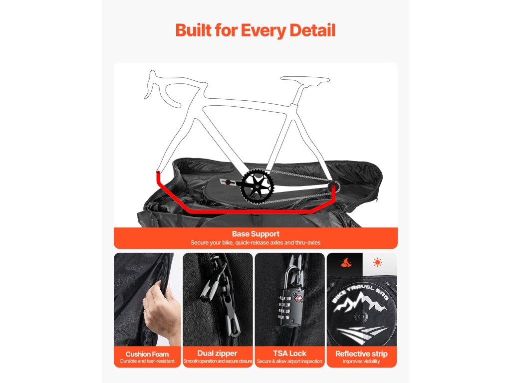 Ez a kerekes kerékpártáska megkönnyíti a szállítást. A táska alkalmas repülőjáratokra, vonatokra, országúti kirándulásokra és túraútvonalakra, segít megvédeni a kerékpárt és menetkészen tartani.
