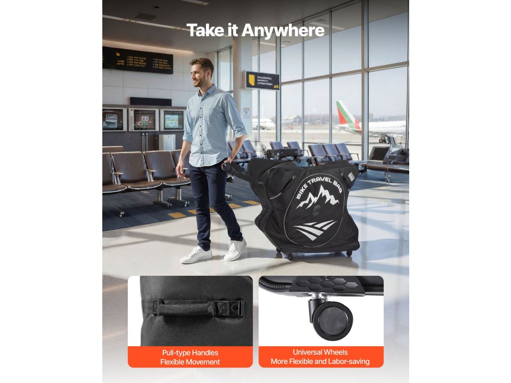 Ez az országúti kerékpáros utazótáska sima kerekeken közlekedik, és párnázott fogantyúval rendelkezik. Kevesebb erőfeszítéssel tolhatja, húzhatja és forgathatja. A stabil kialakításnak köszönhetően könnyebben mozoghatsz a repülőtereken, a pályaudvarokon és a városi utcákon.