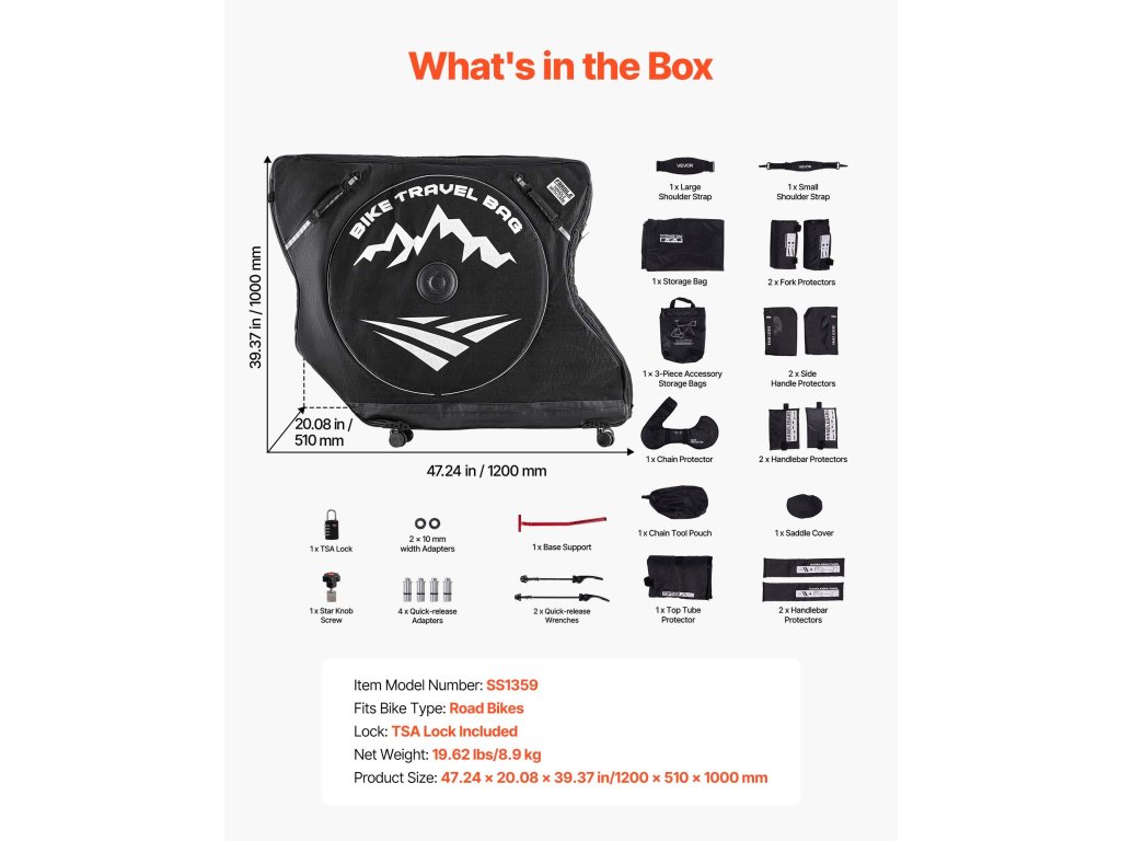 Ez az utazó kerékpártáska kombinálja a tartós külső anyagot a teljes belső párnázással. Segít ellenállni a kopásoknak, ütéseknek és ütéseknek. Körbeöleli a vázat, a villát és a kerekeket, így minden utazás során átfogó védelmet nyújt.
