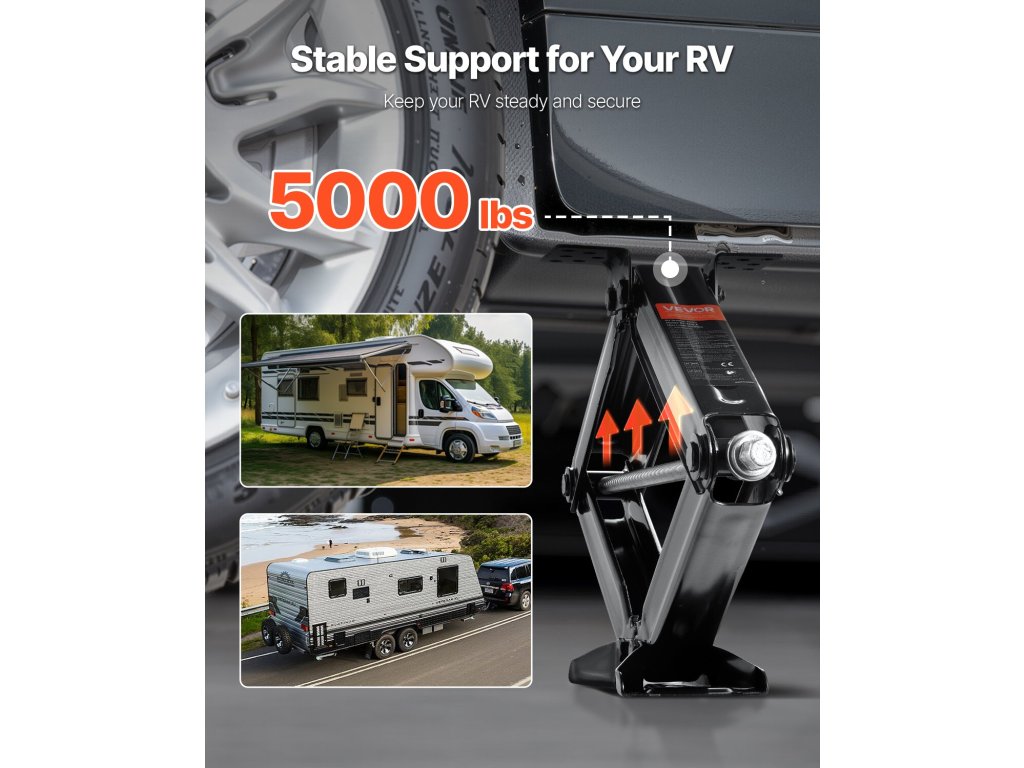 Ez a lakóautó ollós stabilizátor 5000 fontot képes megtartani, és 4-23,4 hüvelykes mozgástartománya van a stabil parkoláshoz. Elektroforetikusan kezelt acélból készült, megbízható alátámasztást biztosít, és a meghosszabbított kézi kurblival és mágneses szinttel könnyen kezelhető önállóan.