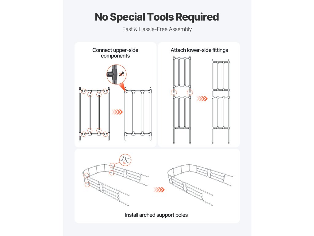 A rácsos ajtónkat az összes szükséges alkatrésszel és a gyors összeszereléshez szükséges összeszerelési útmutatóval szállítjuk. Nem szükséges kertészeti tapasztalat. Az összeszereléshez nincs szükség további szerszámokra, így időt és energiát takaríthat meg saját kerti tájképének kialakításakor.