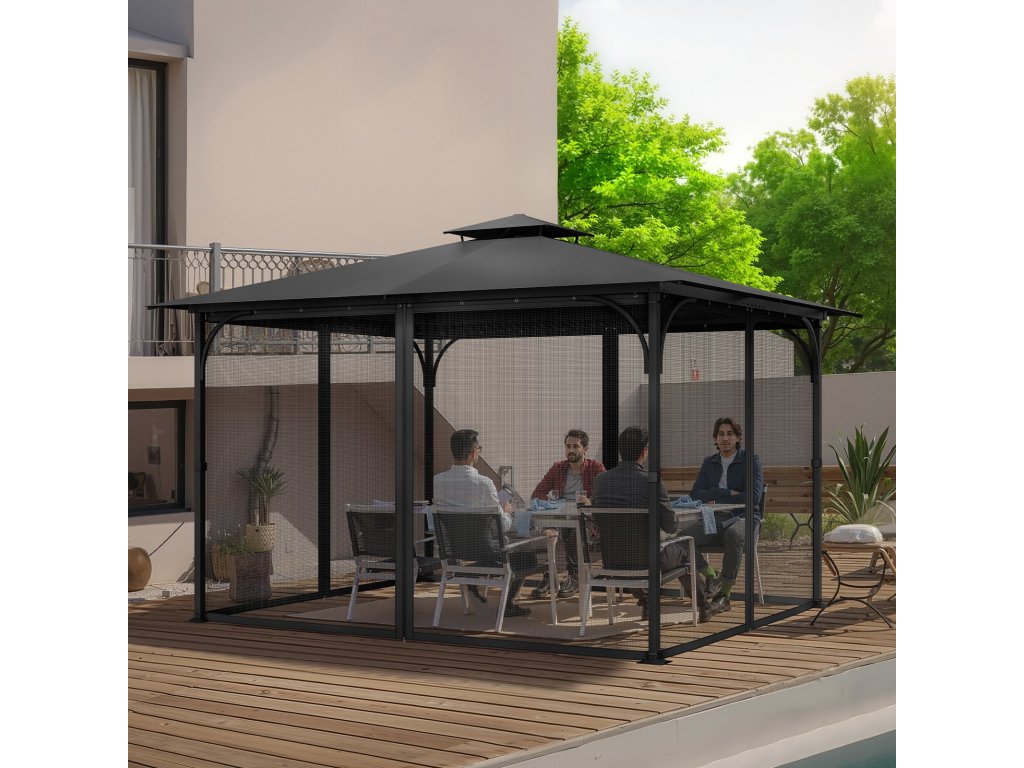 Kerti pavilon háló pótalkatrész 4 paneles dupla cipzárral 3,5×3,3×2,2 m