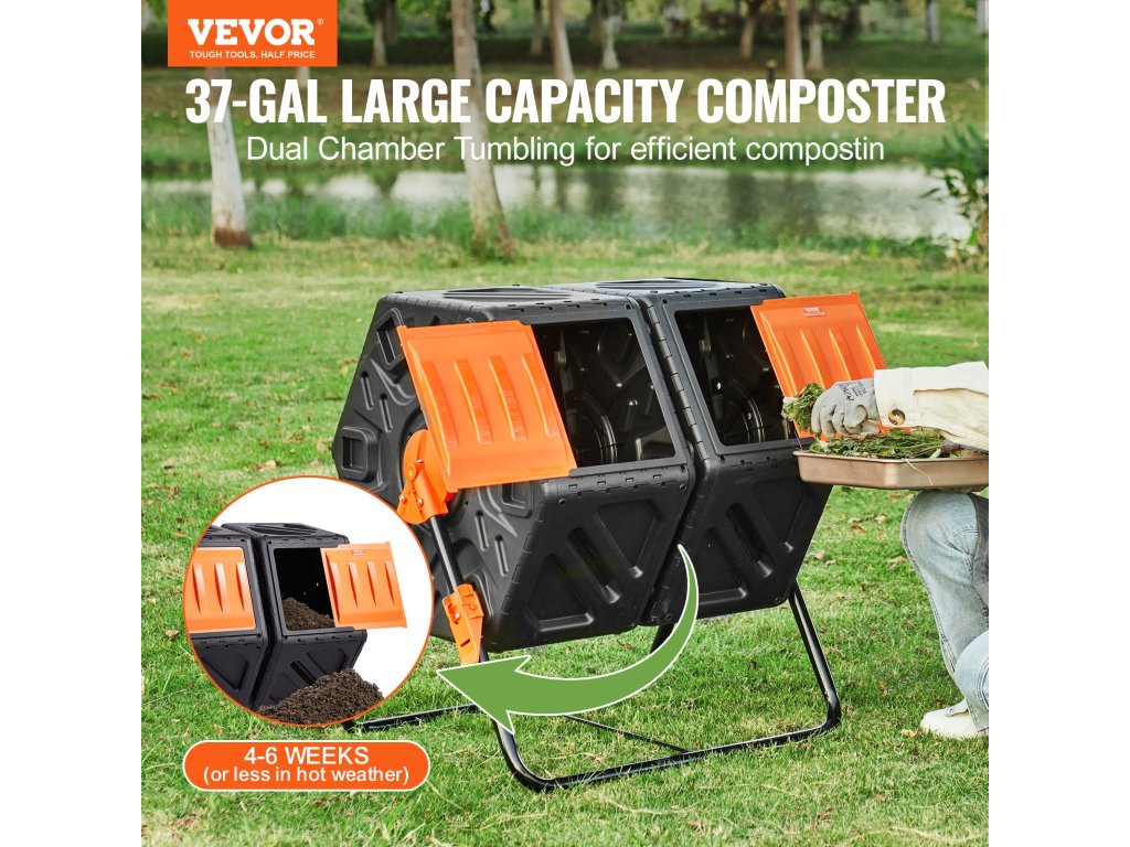 A kétkamrás komposztálóedény lehetővé teszi a folyamatos komposztálás könnyed fenntartását. Amíg az egyik kamra a komposztálással van elfoglalva, addig a másikba kényelmesen új szerves anyagot adagolhat. Nem kell megvárnia, amíg az egyik adag befejeződik, mielőtt a következőt elkezdené.