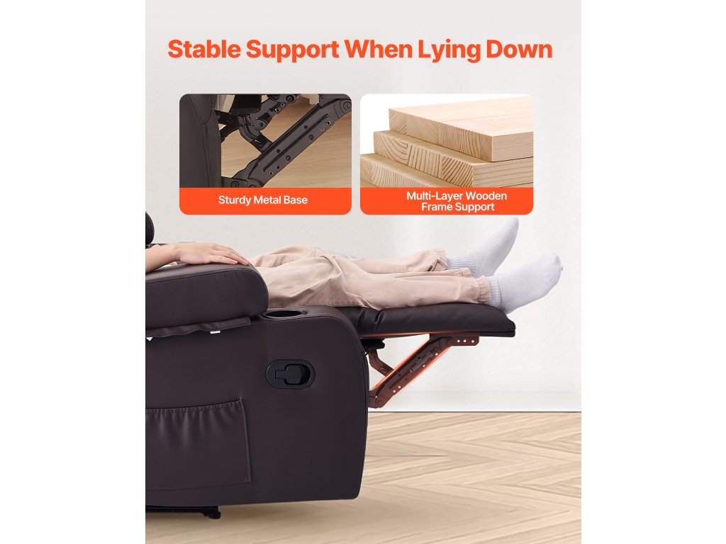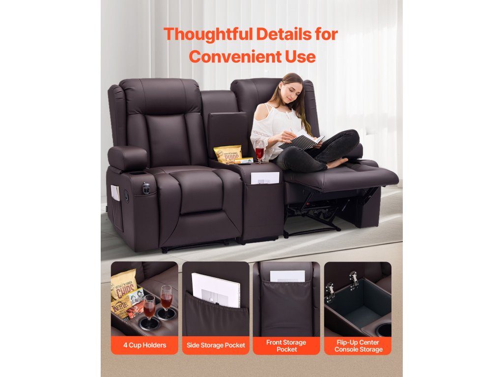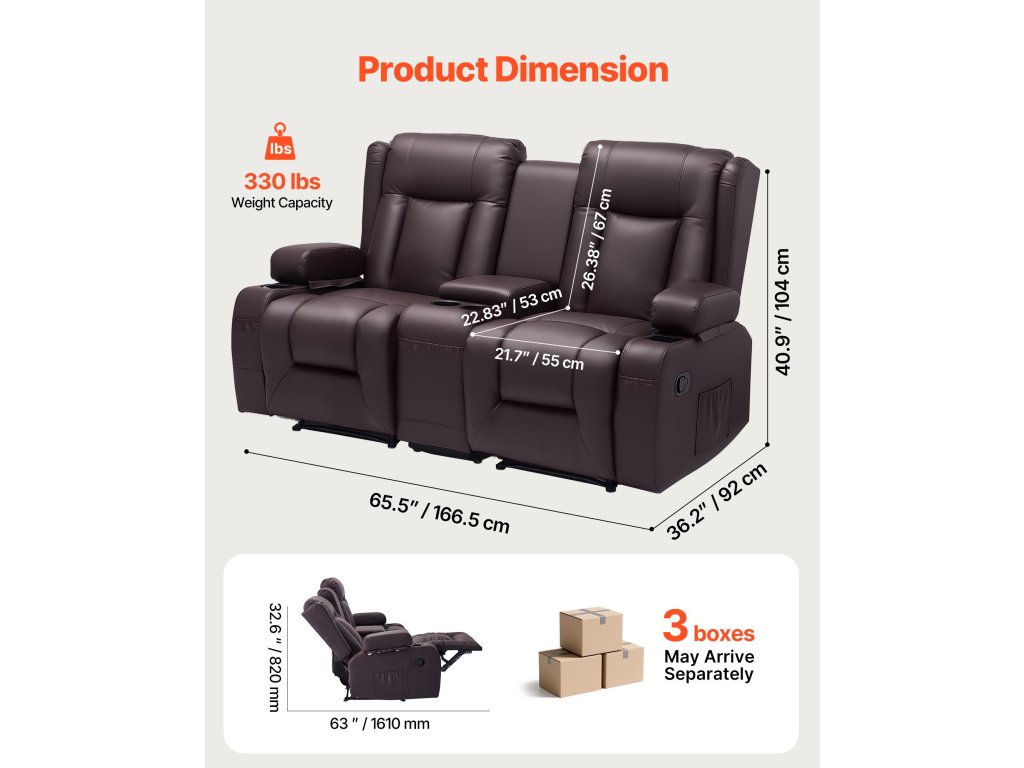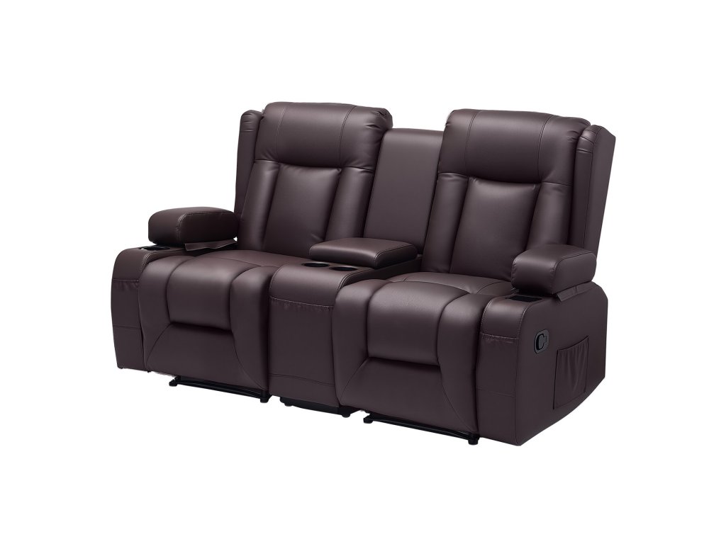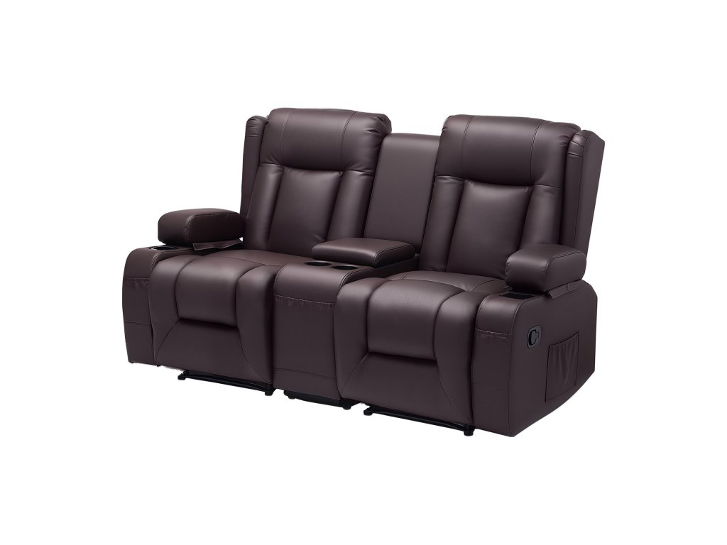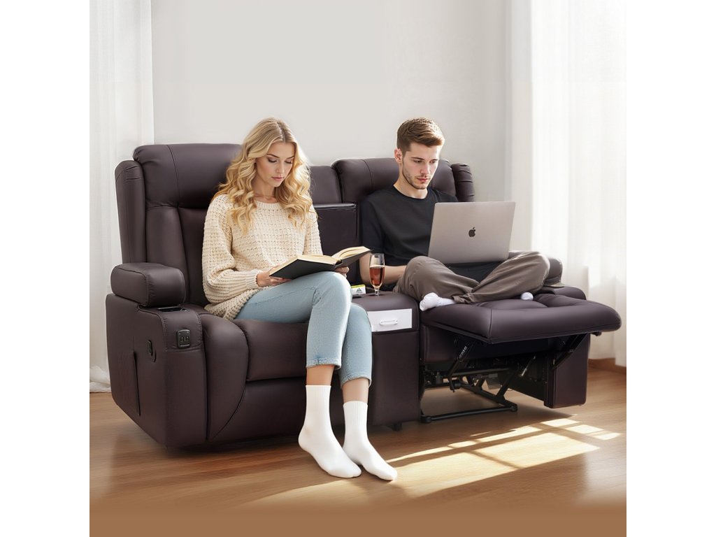 Kétszemélyes, manuálisan dönthető PU ülés USB-vel és tartókkal, barna