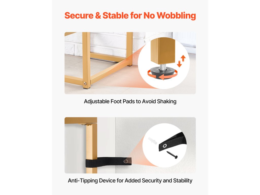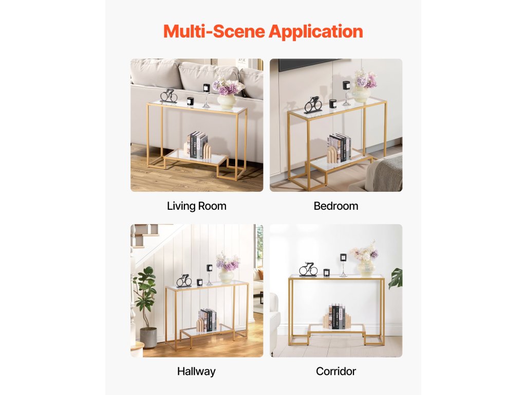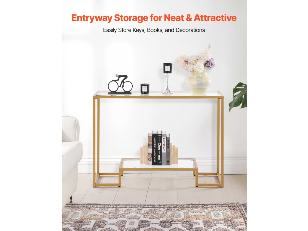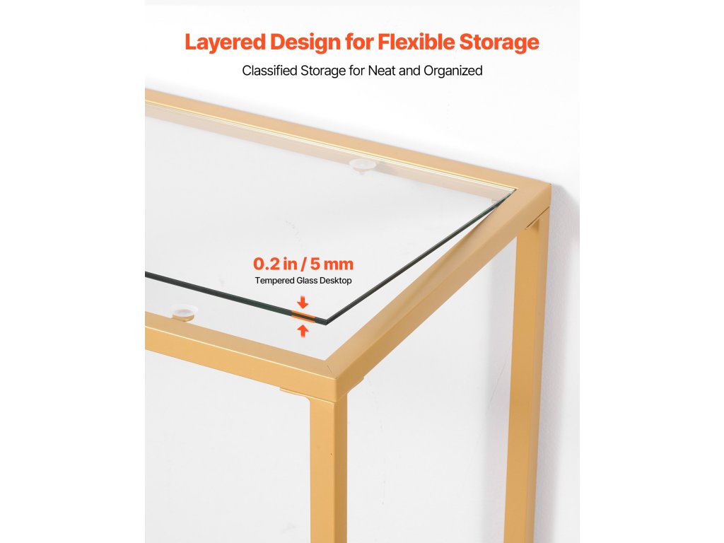 Kétszintes konzolasztal edzett üveggel, arany, borulásgátlóval