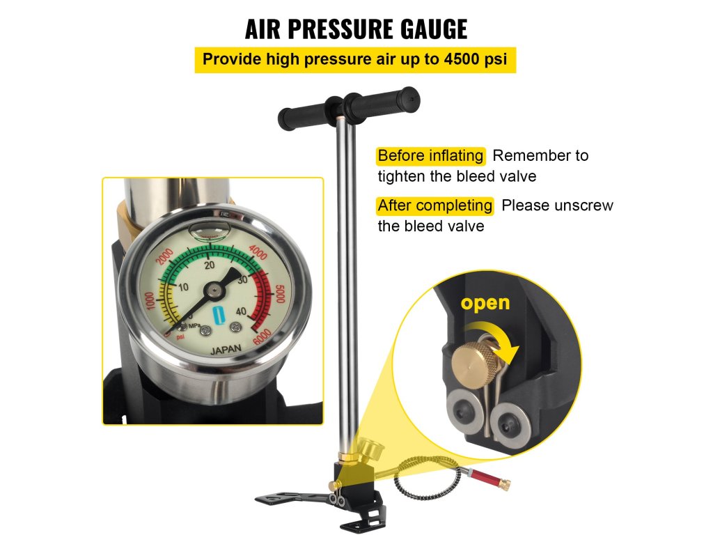 Ez a 3 fokozatú kézi szivattyú akár 4500 psi légnyomást is generál, hogy simán és nagyon hatékonyan töltse fel a PCP légpisztolyokat, így 30%-os megtakarítást érhet el.