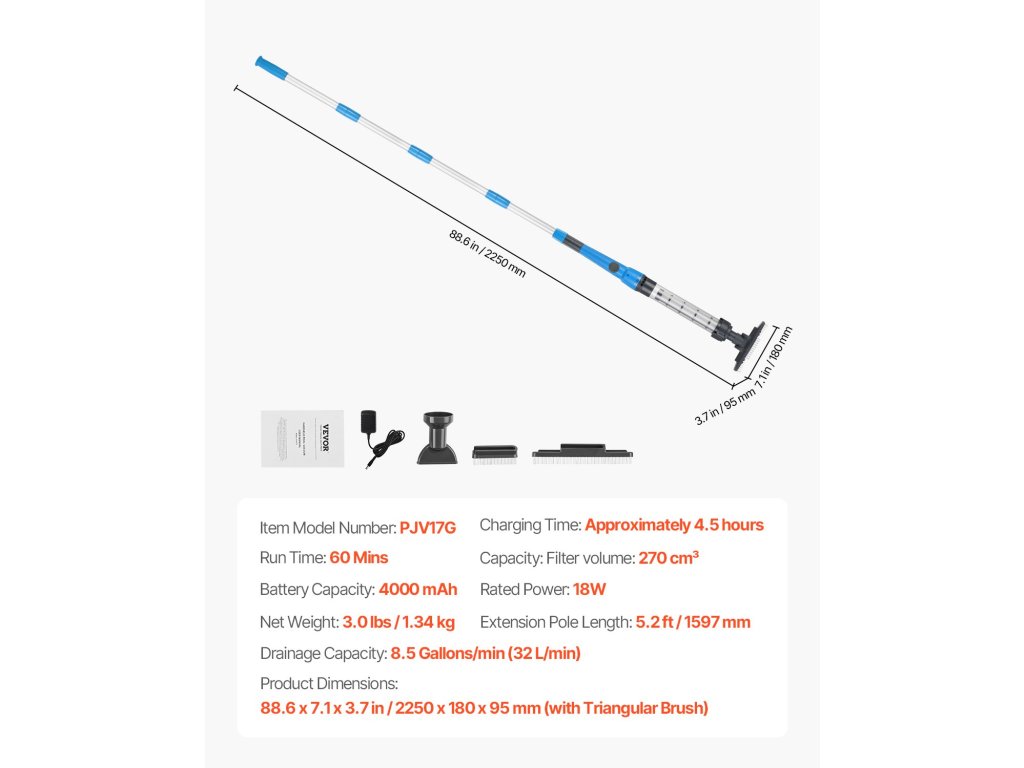Ez az újratölthető medenceporszívó többféle tartozékkal rendelkezik, így ideális föld feletti medencékhez, pezsgőfürdőkhöz, gyógyfürdőkhöz, szökőkutakhoz, akváriumokhoz, lépcsőkhöz, falakhoz és még sok máshoz.