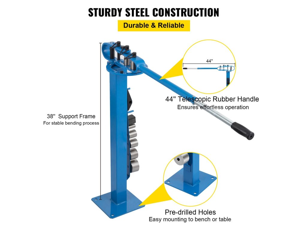 Kézi fém hajlító állvány 7 szerszámmal 1-3, 117,2 cm-es fogantyúval