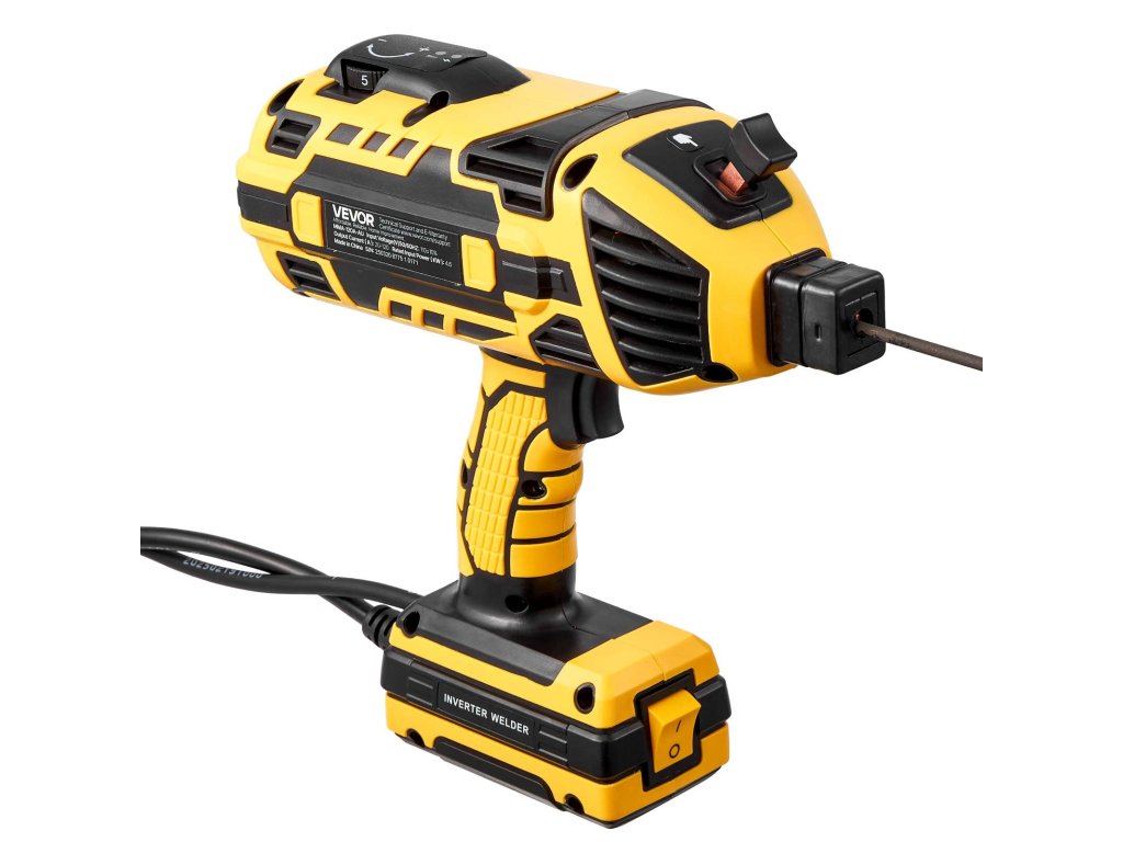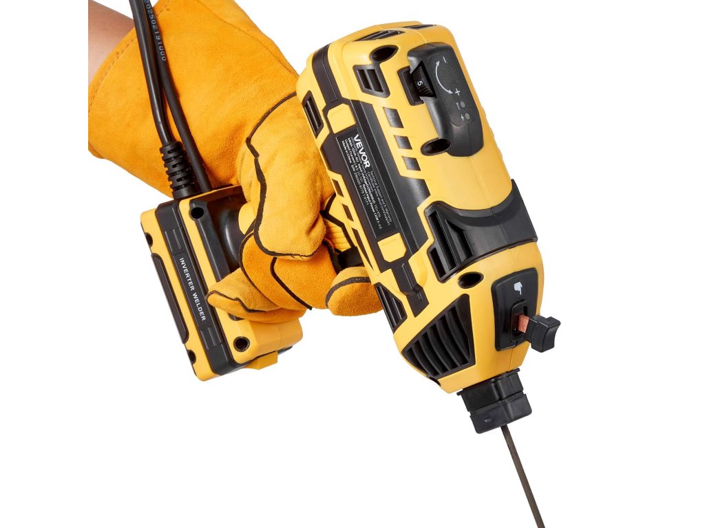 Ez a hordozható hegesztőgép 1,6-3,2 mm vastagságú hegesztőpálcákkal kompatibilis. Egyszerűen nyomja meg az elülső tokmánygombot, helyezze be a pálcát és kezdje el a hegesztést - nincs szükség további szerszámokra.