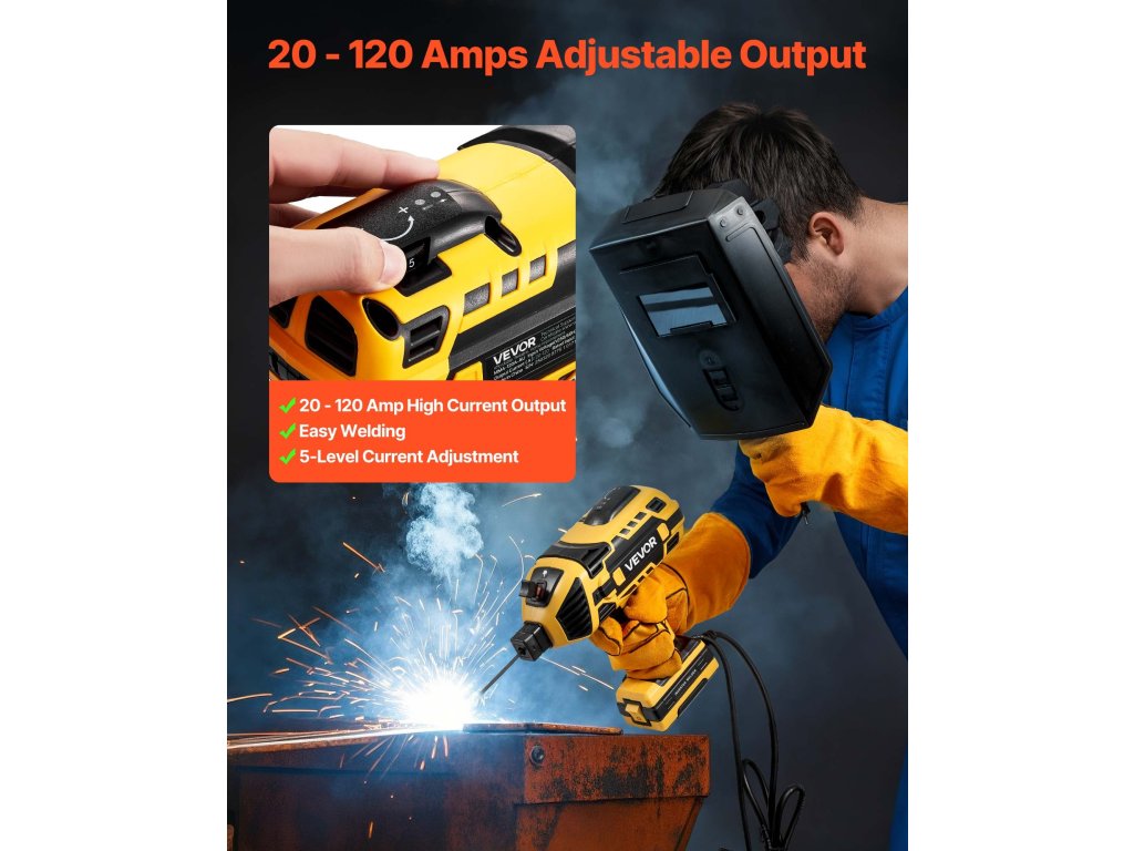 Kézi ívhegesztőnk 20-120A kimenetet támogat 5 fokozatú árambeállítással, amely lehetővé teszi a rugalmas teljesítményszabályozást a különböző hegesztési feladatokhoz, és pontosabb és stabilabb hegesztési eredményeket biztosít (maximális hegesztési vastagság: 0,12 hüvelyk / 3 mm)